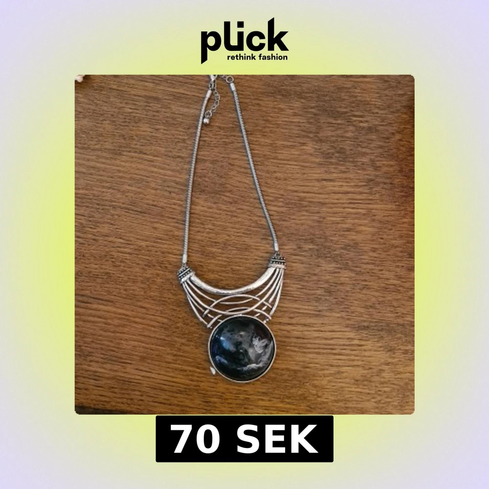 Riktigt coolt stort halsband., lite plastig sten men snygg ändå. Köpt på secondhand, osäker på material tyvärr. Kolla in mina andra saker ja säljer!