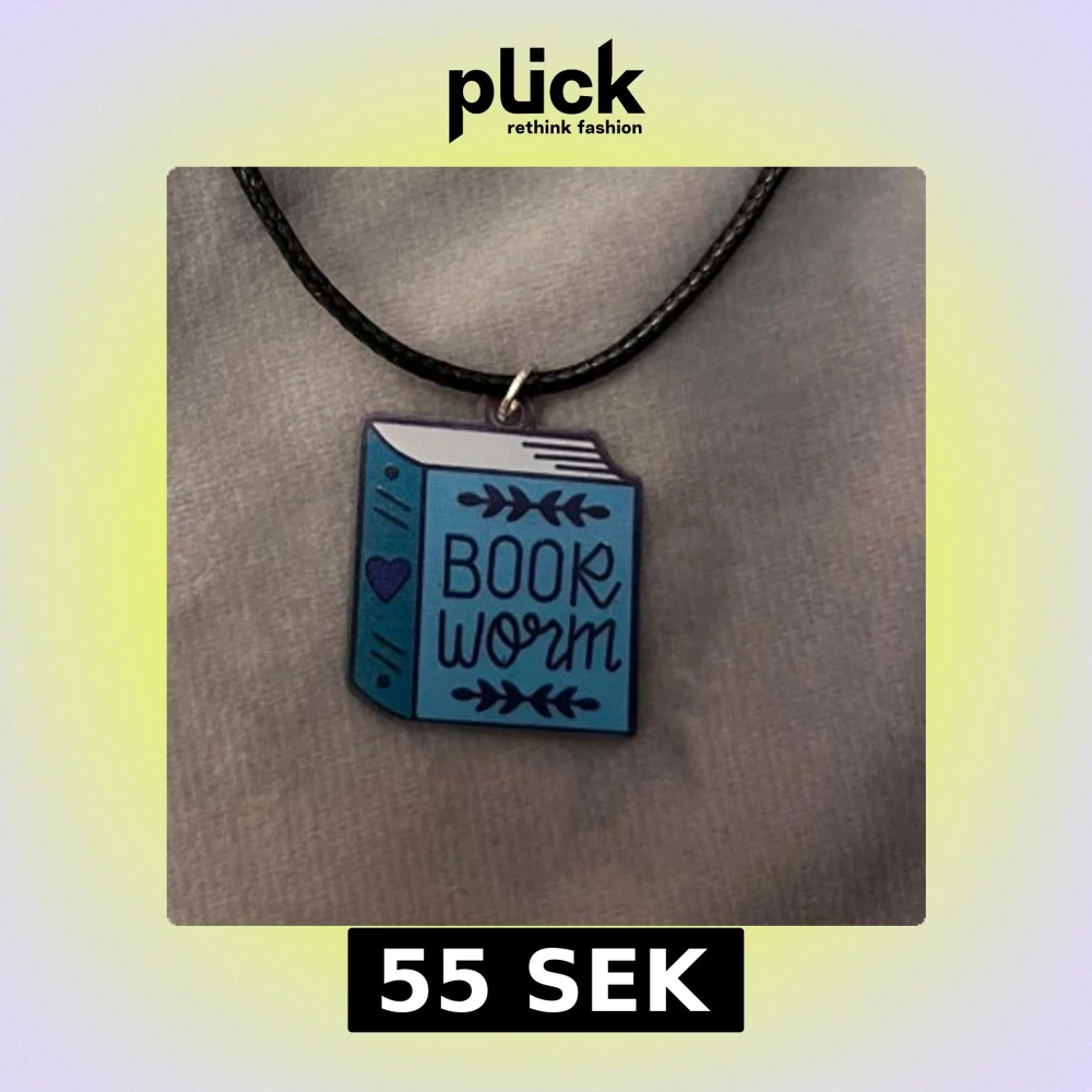 Perfekt halsband för bokälskaren! Berlock i akryl av en blå bok med texten ”book worm”. Berlocken är ca 2,5 x 2,8 cm. Trädd på ett svart snöre justerbart 45-50 cm.