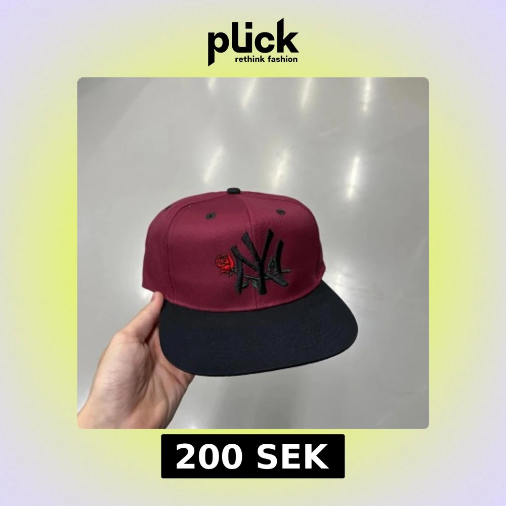 Snygg bordeaux keps från New York Yankees med svart skärm och broderad logga framtill, dekorerad med en röd ros. Justerbar snapback baktill och grön undersida på skärmen. Perfekt accessoar för att lyfta din streetwear-look.
