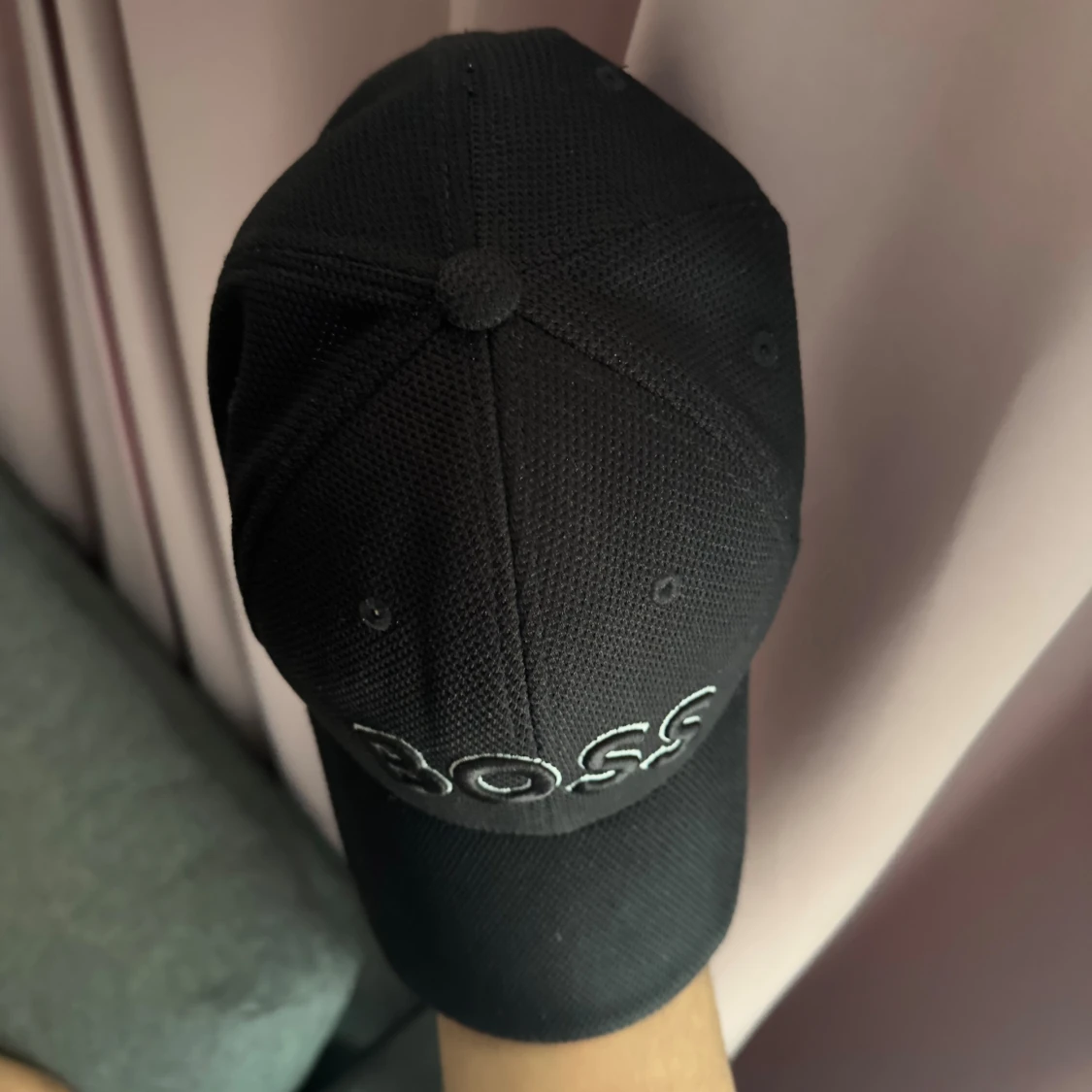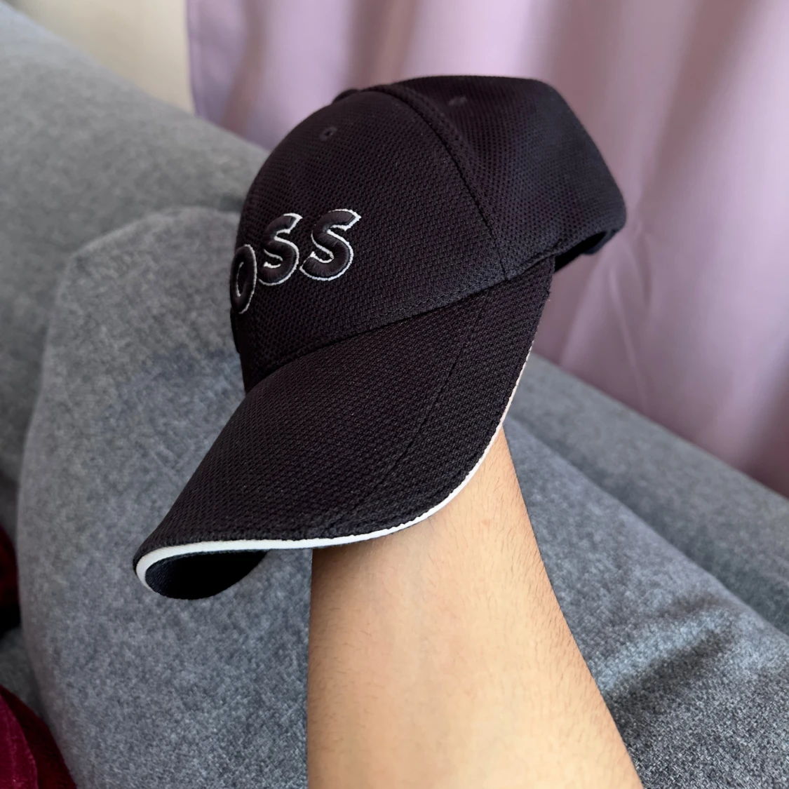 Boss Svart keps med vit kant och broderad "BOSS" logotyp framtill.