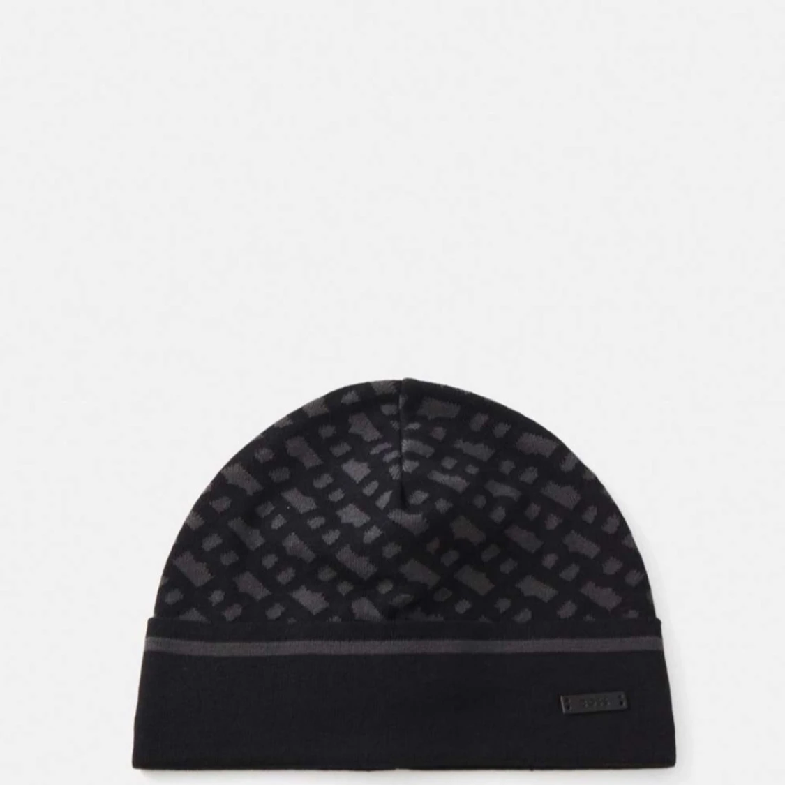 Snygg svart mössa från hugo boss med ett diskret mönster. Perfekt för kyliga dagar. Den har en stilren design med en liten logotypdetalj framtill.