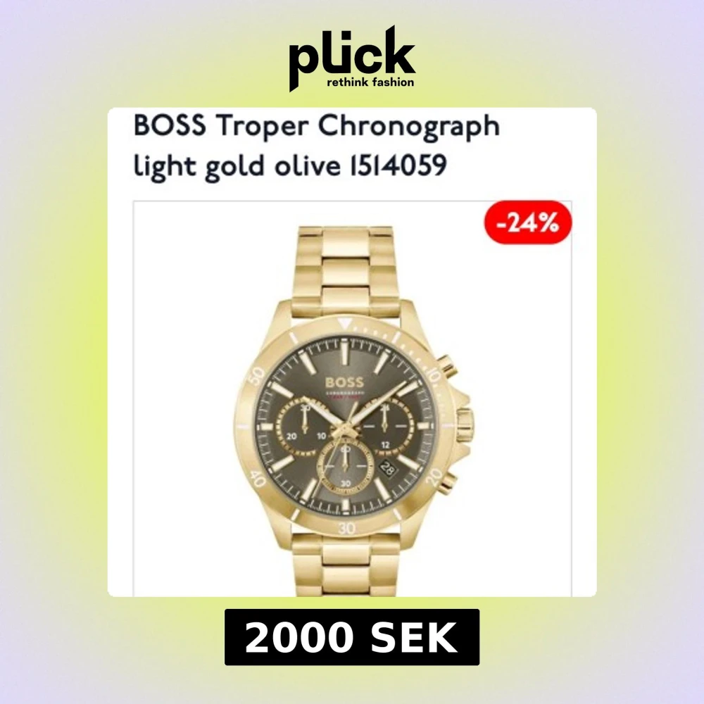 Stilren herrklocka från BOSS med kronograf och länkarmband i guldton. Urtavlan är olivgrön med guldiga detaljer och tre mindre urtavlor. Perfekt accessoar för dig som gillar exklusiv design.