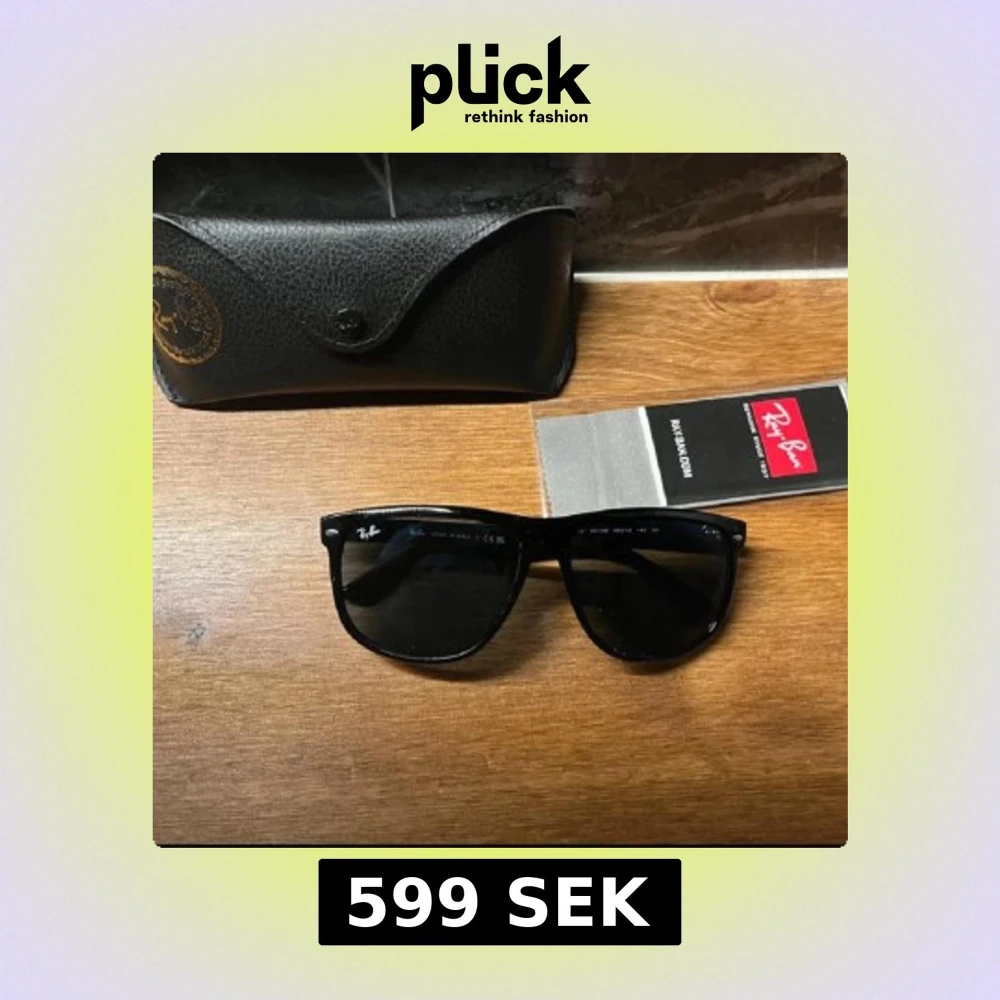 Helt nya Snygga svarta Ray-Ban RB4147 solglasögon med klassisk fyrkantig form och blått glas. Tillverkade i Italien och kommer med originalfodral och putsduk. Perfekta för dig som vill ha en tidlös och cool look i solen. OBS glaset är blått! Syns tydligare på sista bilden och för bilder i bättre ljus är det bara att skriva :)