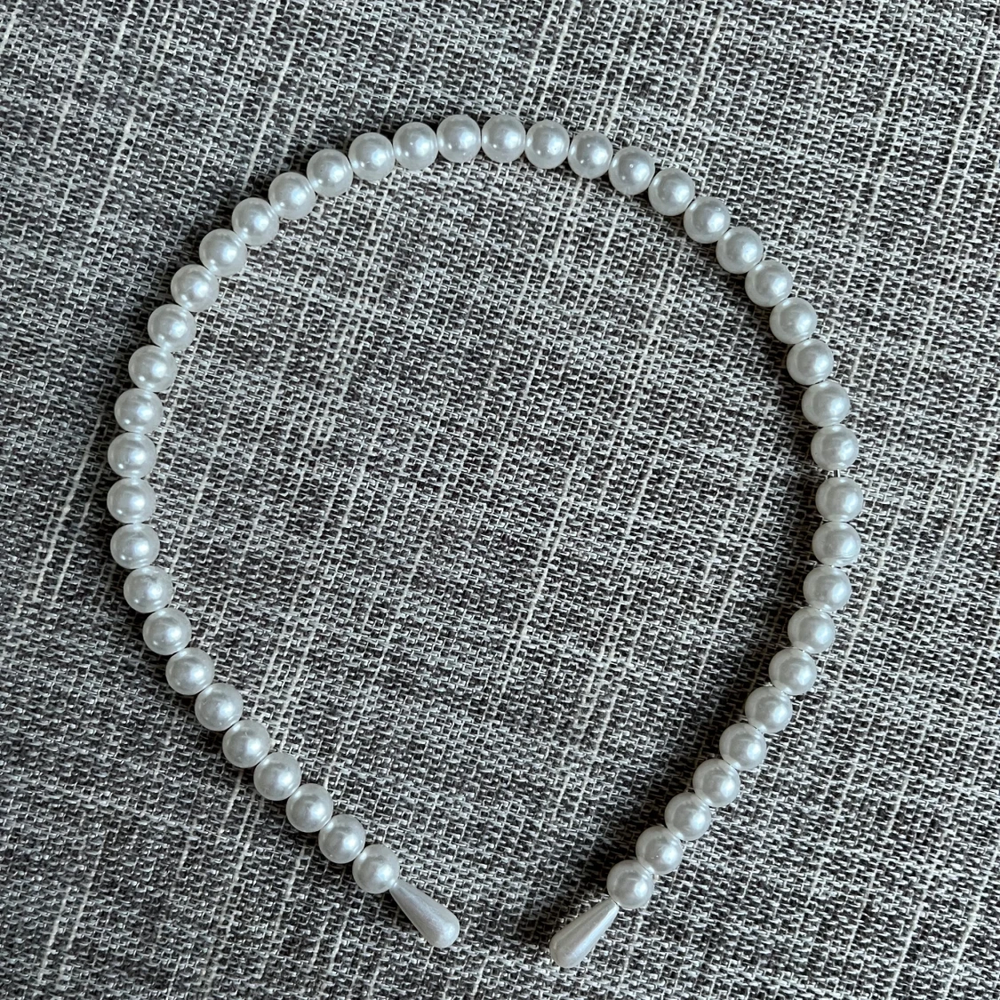 Snyggt hårband dekorerat med vita pärlor runt hela bågen. Perfekt accessoar för att ge en elegant touch till din frisyr. Passar både till utsläppt och uppsatt hår.