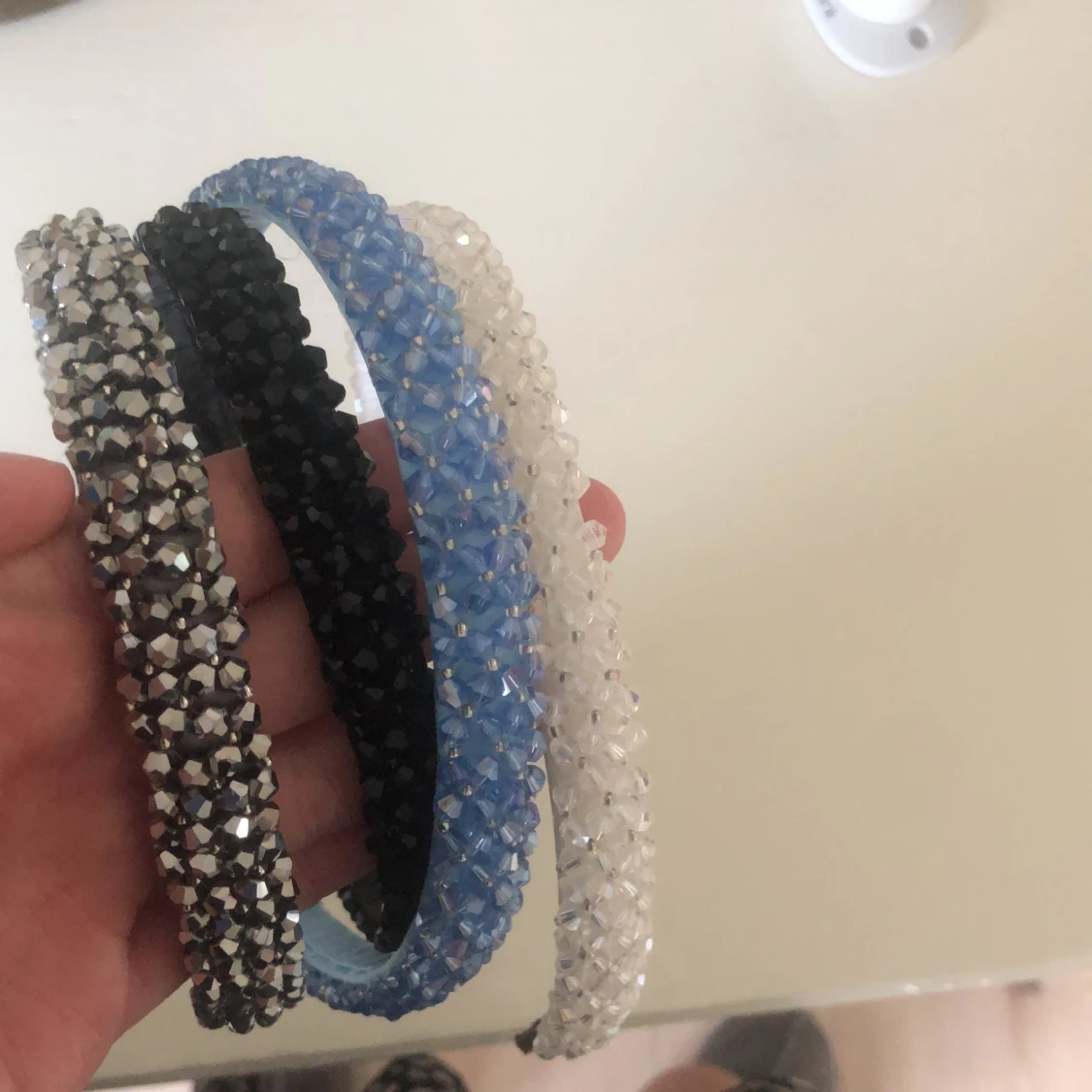 Hej❤️ jag säljer dessa 4 populära diademen, de flesta är i bra skick förutom den gråa där de svarta bandet längst ner har lossnat❤️❤️❤️