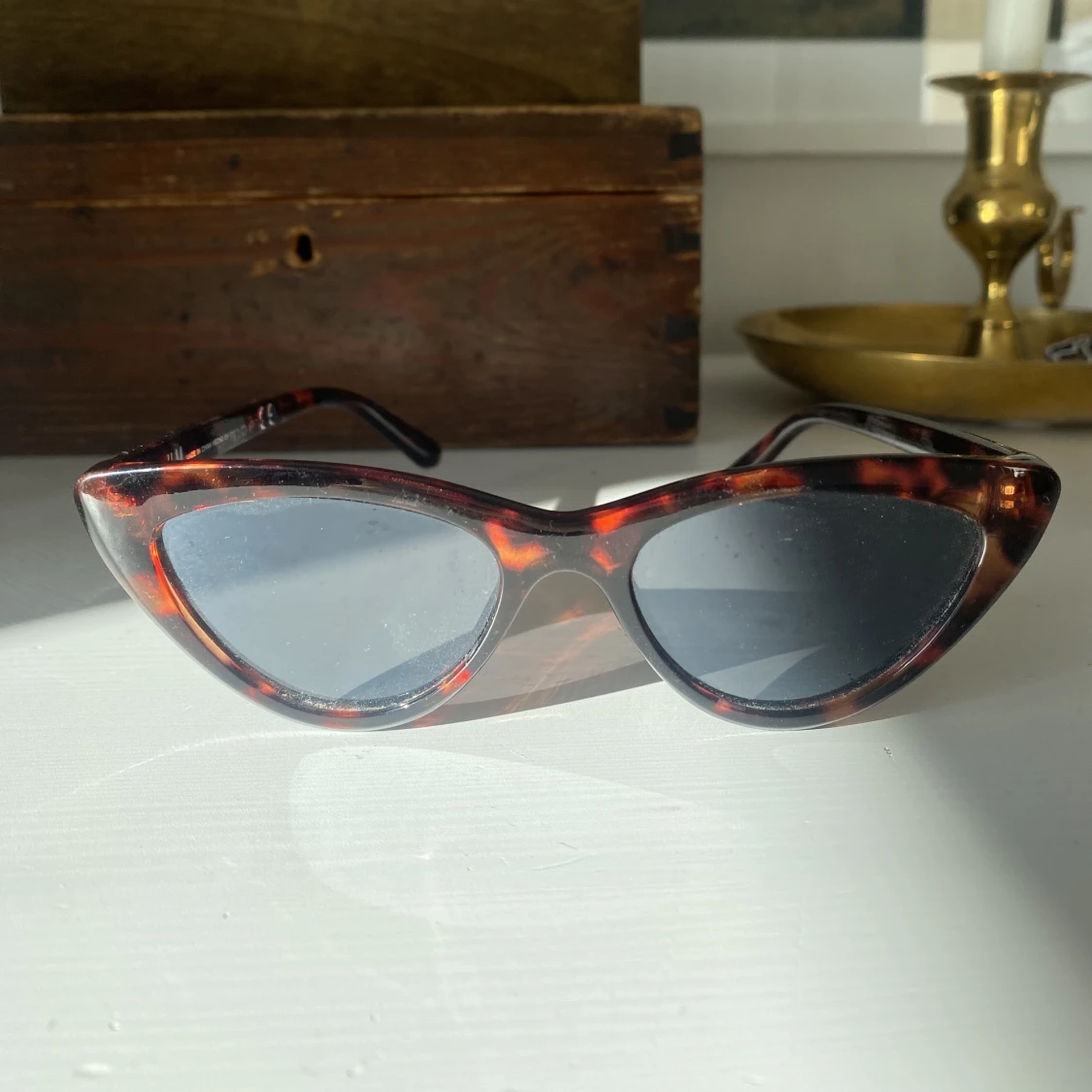 Små ”cat eye” solglasögon med mörkt leopardmönster. Väldigt smickrande form. Små i passform. Väldigt bra skick, använda enstaka gång.
