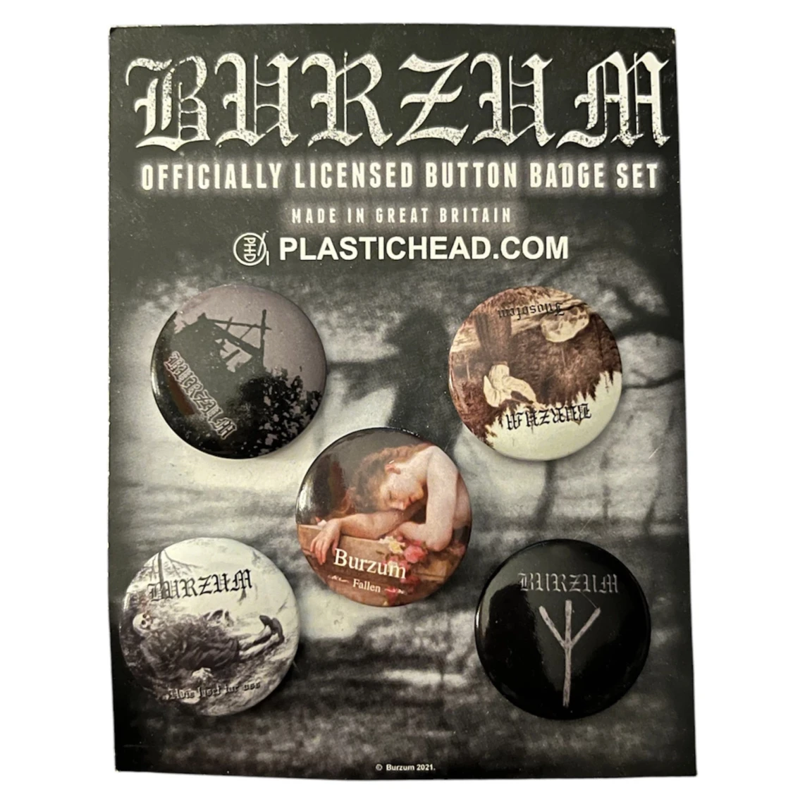 5 st Burzum pins. Nypris 109kr på Bengans :) 2,4cm breda