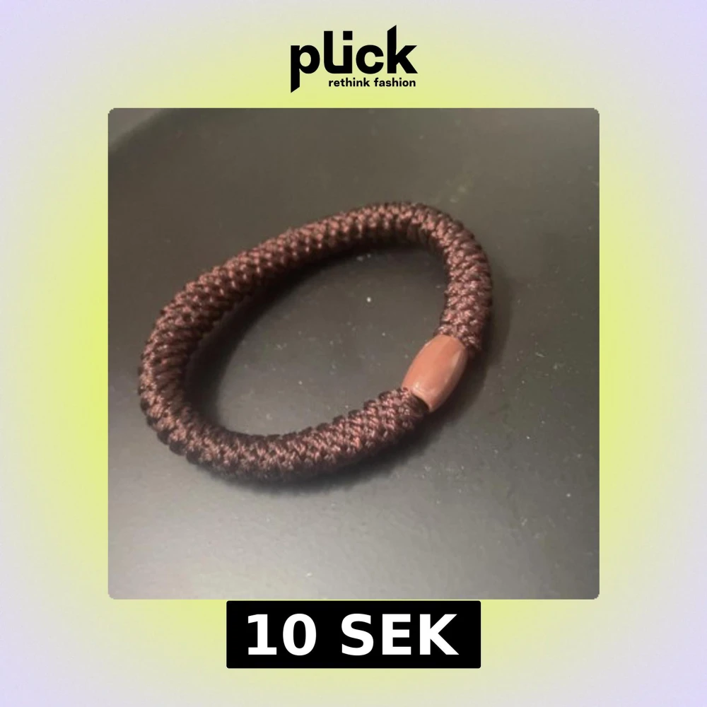Ett brunt armband i flätad syntet med en oval pärldetalj i plast. Armbandet har en enkel och stilren design som passar perfekt för dig som gillar minimalistiska accessoarer. Flexibelt och lätt att bära varje dag.