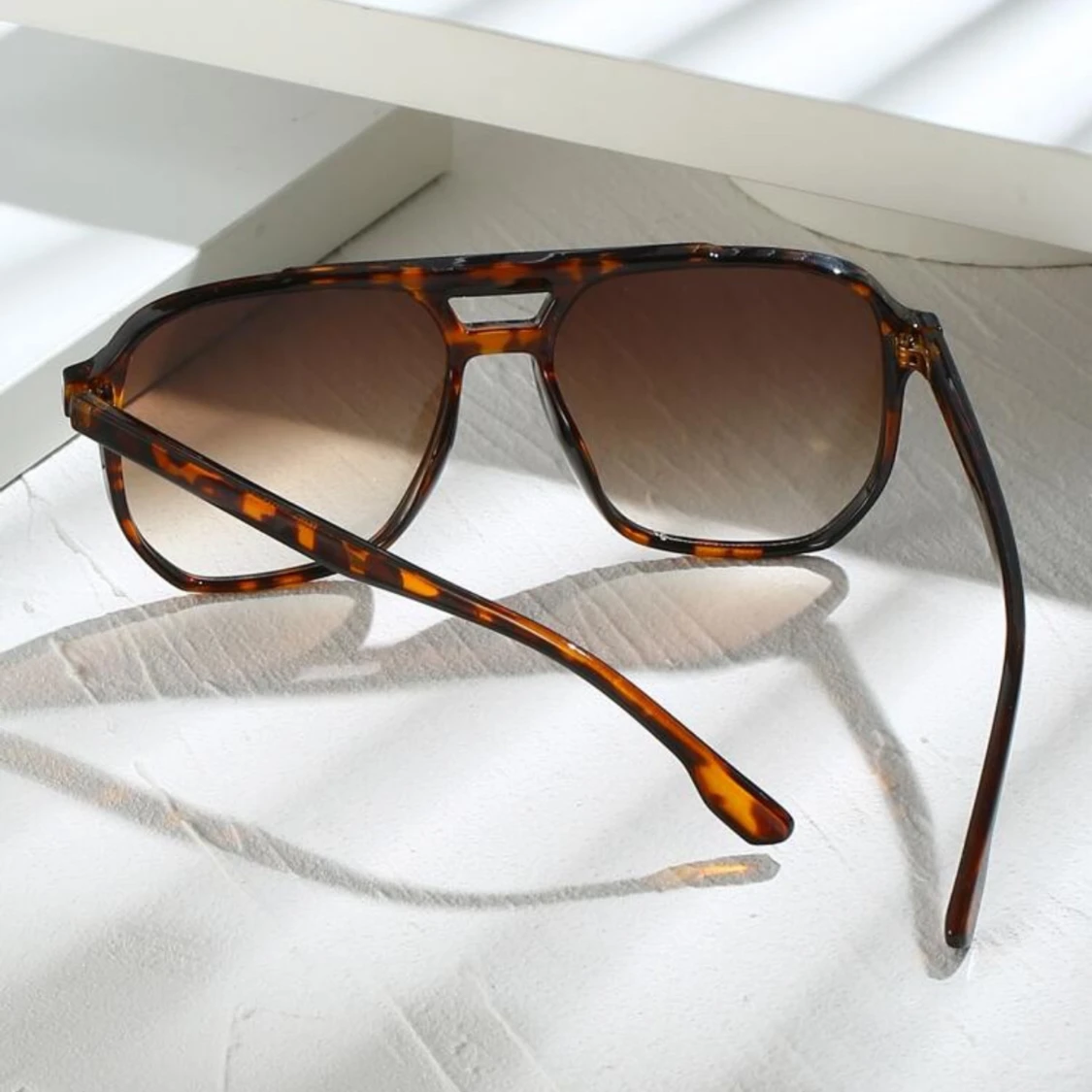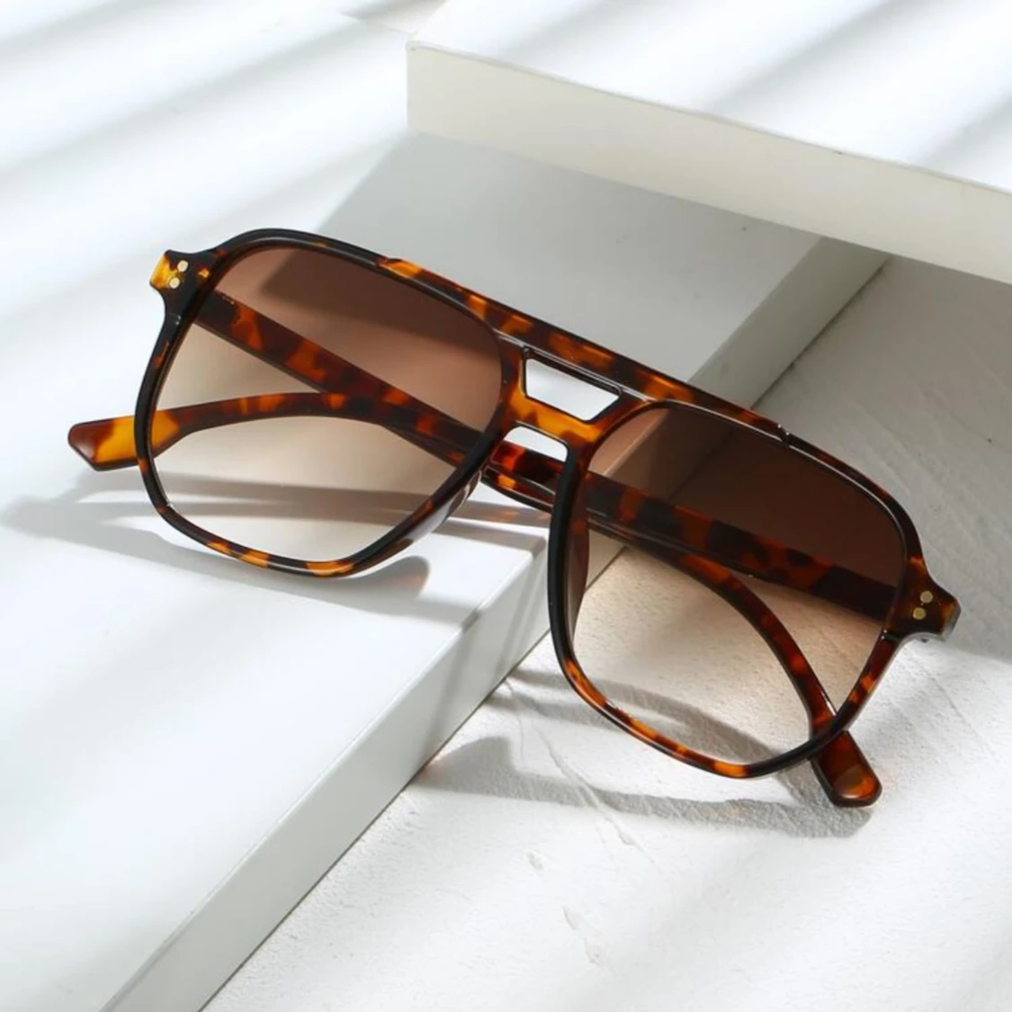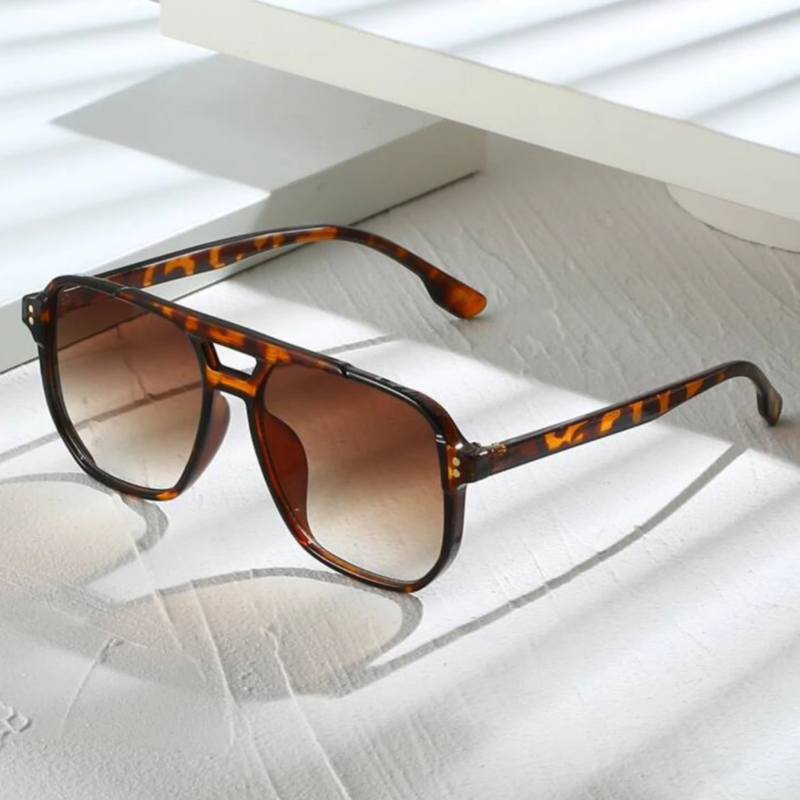 Snygga solglasögon med klassisk aviatorform och leopardmönstrat brunt bÄge. Glasen Àr tonade i brunt och bÄgarna har en modern, oversized look. Perfekt accessoar för att lyfta din stil.