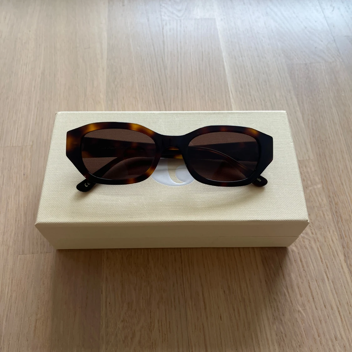 Snygga solglasögon med en unik form och leopardmönstrad båge. Perfekta för att ge en trendig touch till din stil. Kommer i ett praktiskt fodral.