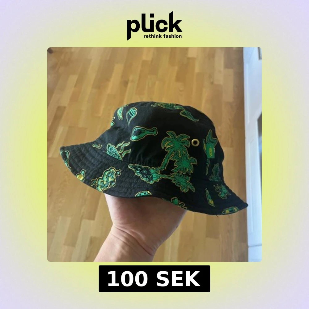 Cool svart bucket hat från Vans med tropiskt mönster i grönt och gult. Använd 1 gång