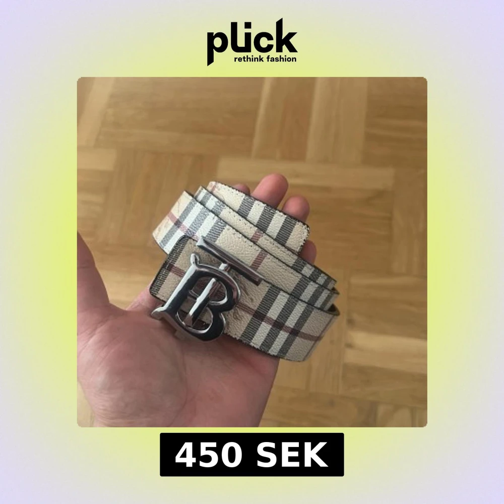 Snyggt bälte från Burberry med klassiskt rutmönster i beige, svart, vitt och rött. Bältet har ett stort silverfärgat B-spänne framtill. Perfekt accessoar för att lyfta din outfit.