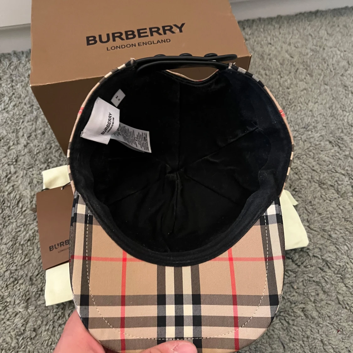 Säljer en klassisk rutig keps från Burberry i beige, svart, röd och vit. Kepsen har justerbar passform och är tillverkad i polyester. Perfekt accessoar för en stilren look.