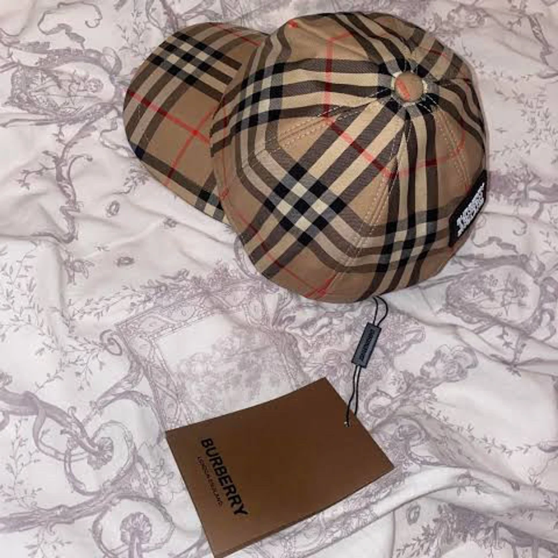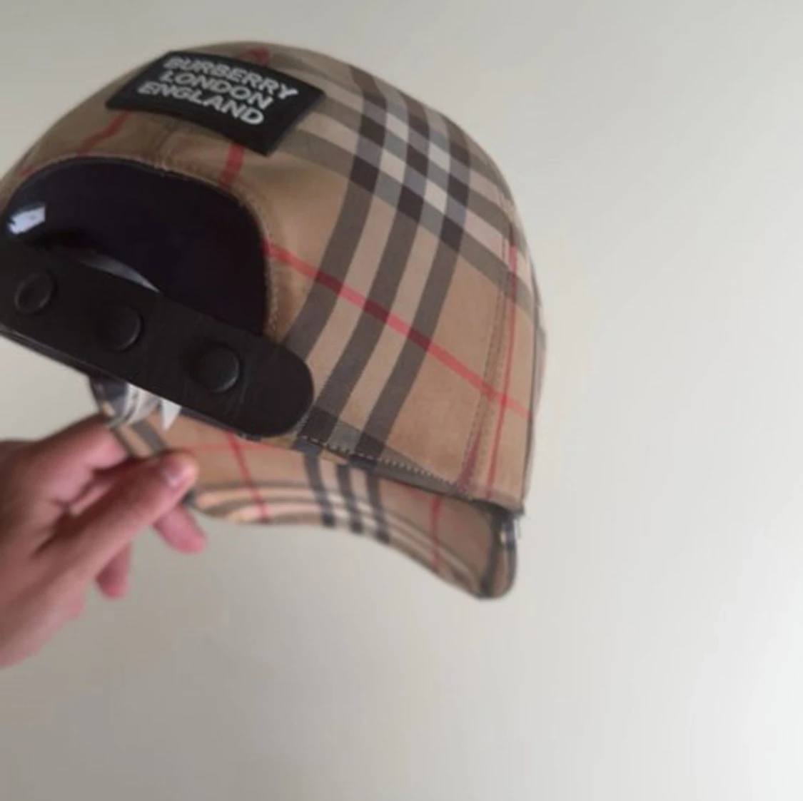Snygg keps från Burberry i klassiskt rutigt mönster med beige, svart, vitt och röda linjer. Justerbar baksida med tryckknappar och Burberry London England-patch. Perfekt accessoar för att lyfta din outfit. Priset kan diskuteras