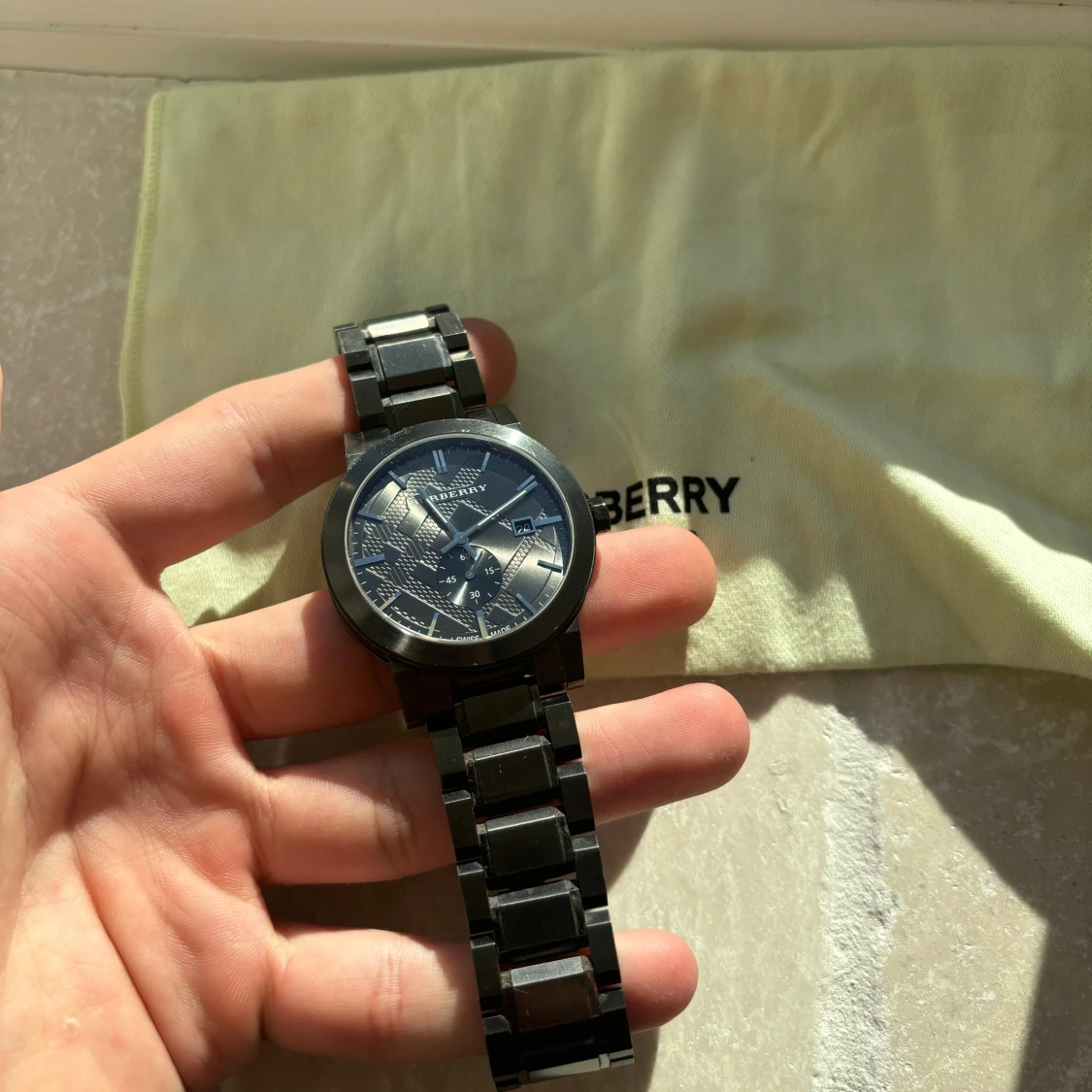 Helt brutalt snygg unik Burberry klocka i borstat mörkt stål som glänser på armen. Sweishiskt urverk och en super klocka som ligger på upp emot 10 000 kr ny. Självklart äkta och tveka inte vid minsta fundering!