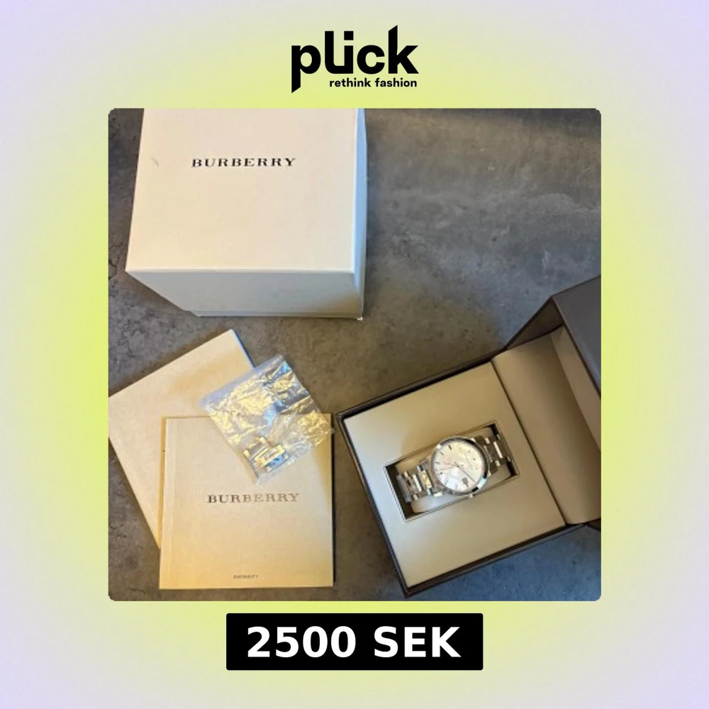 Stilren klocka från Burberry i silverfärgat rostfritt stål med klassisk länk och mönstrad urtavla. Klockan har datumvisning och levereras i originalask med extra länkar. Nypris ca 5500-6000kr