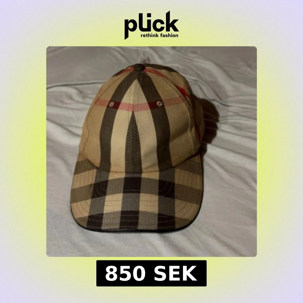 Snygg Burberry keps med klassiskt rutigt mönster i beige, svart och röda detaljer. Kepsen har böjd skärm och justerbar passform. Tillverkad i bomull, perfekt för dig som vill ha en ikonisk streetstil med lyxig touch.
