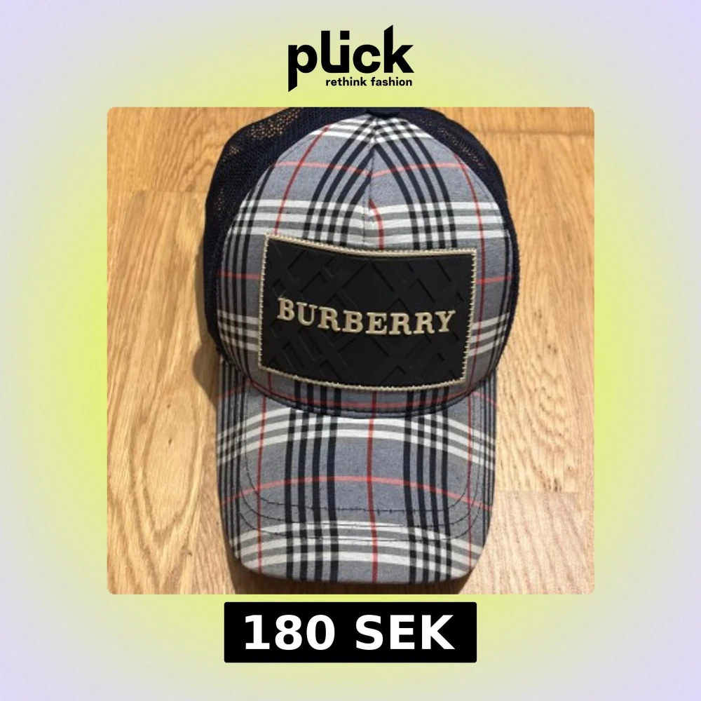Snygg keps från Burberry med klassiskt rutigt mönster i grått, svart, vitt och röda linjer. Stor svart patch framtill med Burberry-logga i guld. Baksidan är i svart mesh för extra ventilation. Perfekt accessoar för en trendig streetstyle.
