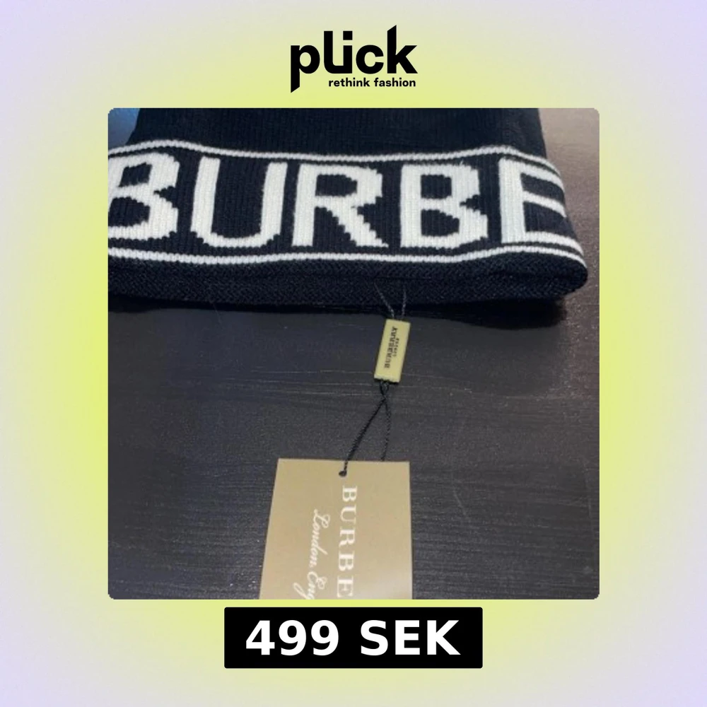 Snygg svart mössa från Burberry med stor vit logga framtill. Klassisk ribbstickad design som ger en cool och modern vibe. Perfekt för dig som vill ha en stilren accessoar med lyxig känsla. Materialet är stickat och mössan har en bred kant med kontrastfärg.