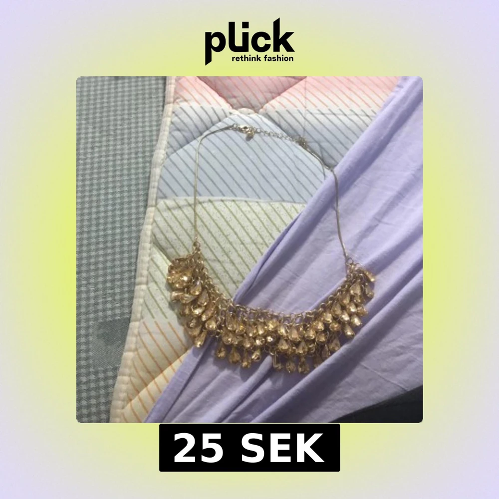 Säljer ett maffigt halsband i guld med flera droppformade hängen som ger en glittrig och iögonfallande look. Perfekt accessoar för att lyfta din outfit med extra glamour. Justerbar kedja för bästa passform.