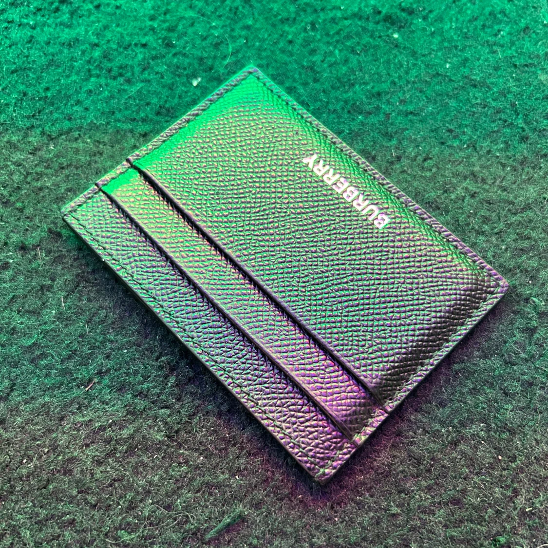 Korthållare från Burberry i präglat skinn. Fodralet har flera kortfack på båda sidor och en stilren design med Burberry-logga i silver framtill. Perfekt för dig som vill ha koll på korten utan att ta plats i fickan.