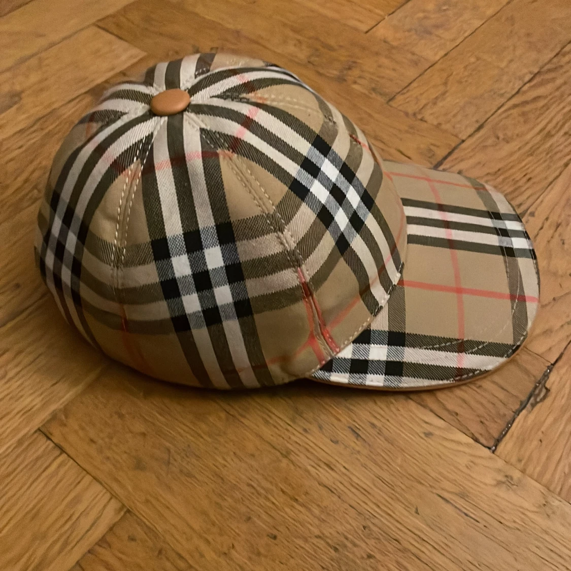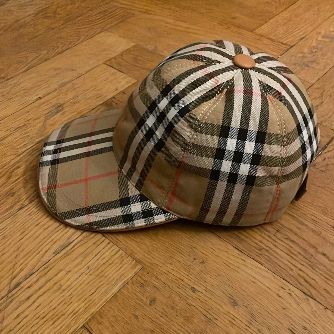 Snygg keps från Burberry med klassiskt rutigt mönster i beige, svart, vitt och röda linjer. Justerbar rem baktill och böjd skärm. Tillverkad i bomull och perfekt för dig som vill ha en ikonisk accessoar med streetkänsla.