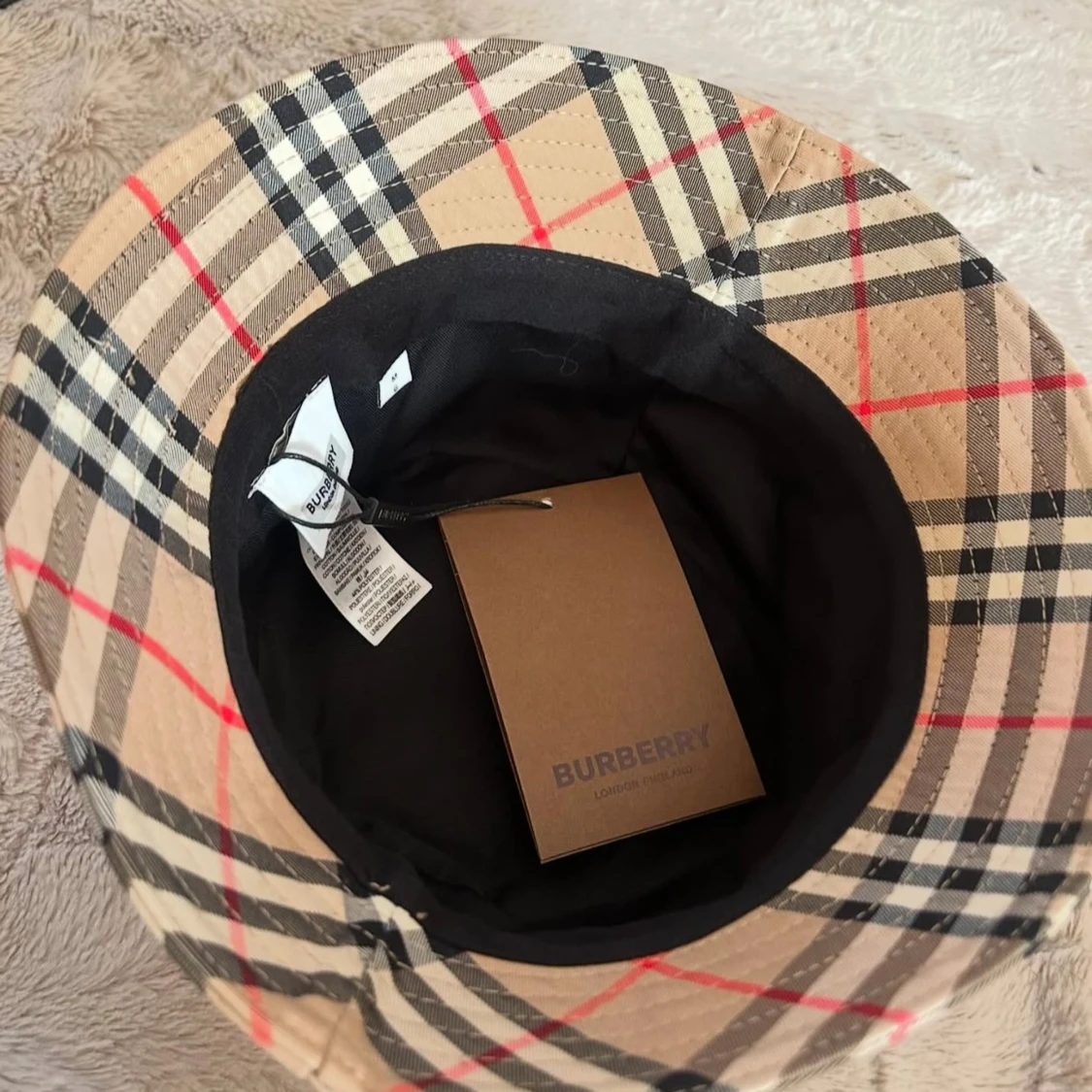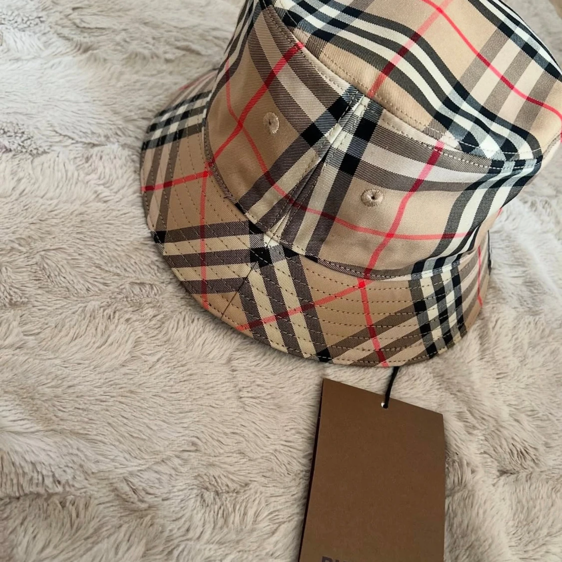 Snygg bucket hat från Burberry i deras ikoniska beigea, svarta och röda rutmönster. Hatten är tillverkad i bomull och har en mjuk, nedvikt brätte. Perfekt accessoar för att lyfta din streetstyle med lyxig känsla.