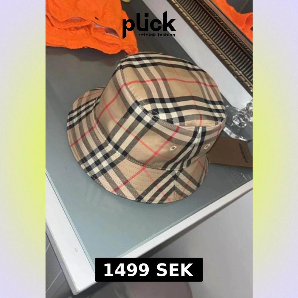 Priset kan diskuteras vid dm. Säljer en snygg bucket hat från Burberry med klassiskt rutigt mönster i beige, svart, vitt och röda linjer. Hatten har en mjuk form och är tillverkad i bomull med svart innertyg. Perfekt för att lyfta din streetwear-look. Size M passar S och L.