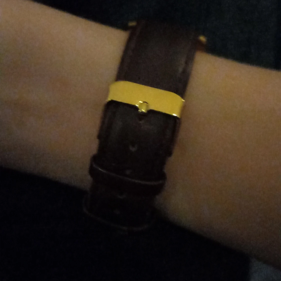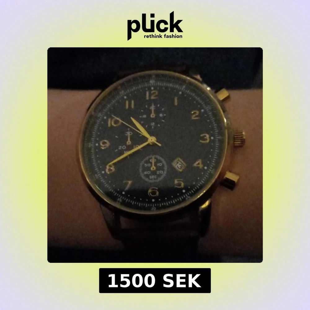 Snygg herrklocka från Kiomi med brun läderrem och guldiga detaljer. Urtavlan är svart med guldiga siffror och visare, samt har en datumvisare. Perfekt för den stilmedvetne!