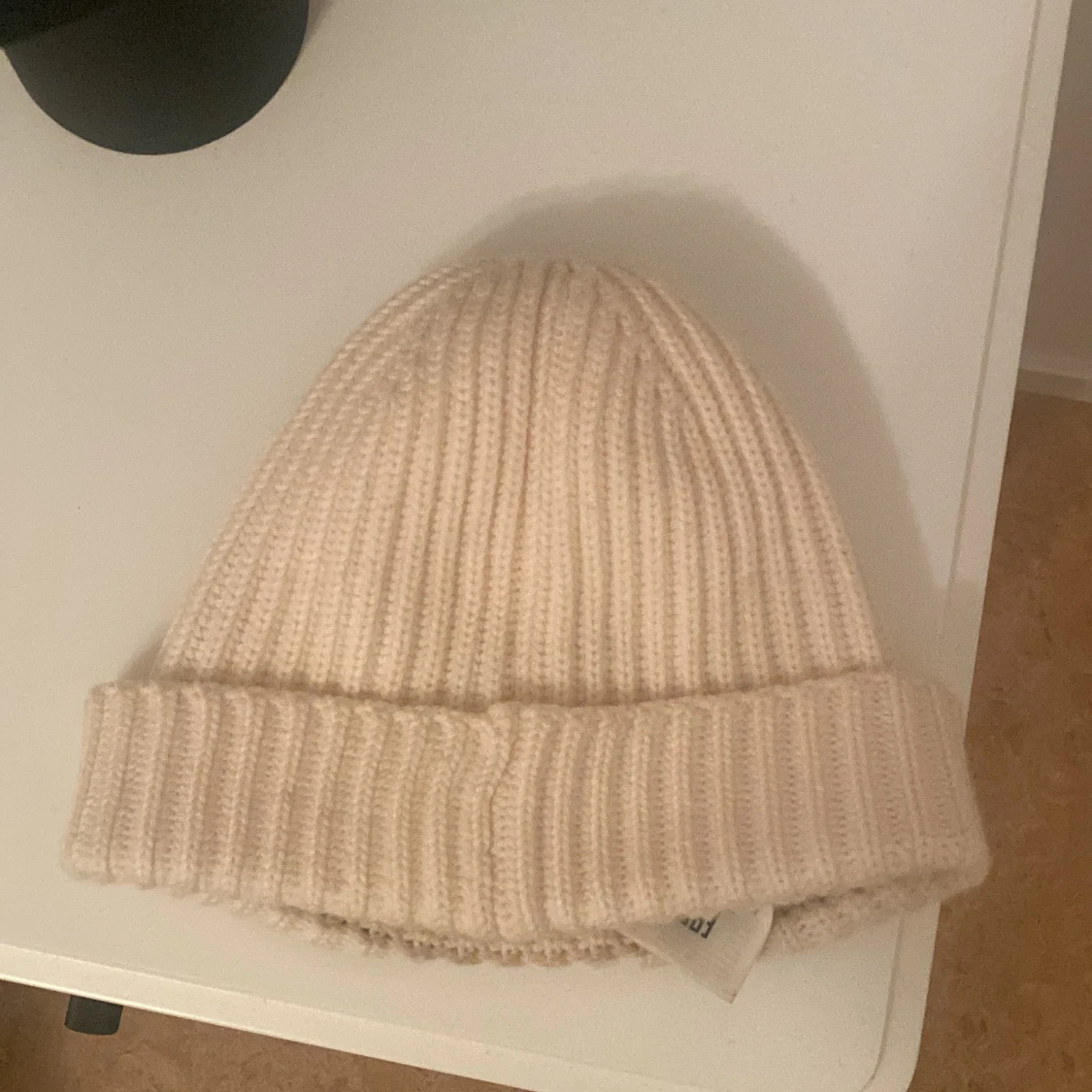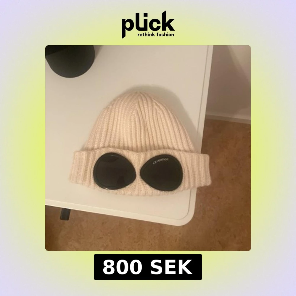Äkta nyskick knappt använd. Säljer en ikonisk vit ribbstickad mössa från C.P. Company med svarta goggle-linser framtill. Mössan är tillverkad i mjuk ull och har en bred uppvikt kant. Perfekt för dig som vill sticka ut med streetwear-vibe. Nypris 1500kr. Storlek M i ungsomstorlek men passar som strl. S i vuxen. Köpt i NK i sthlm
