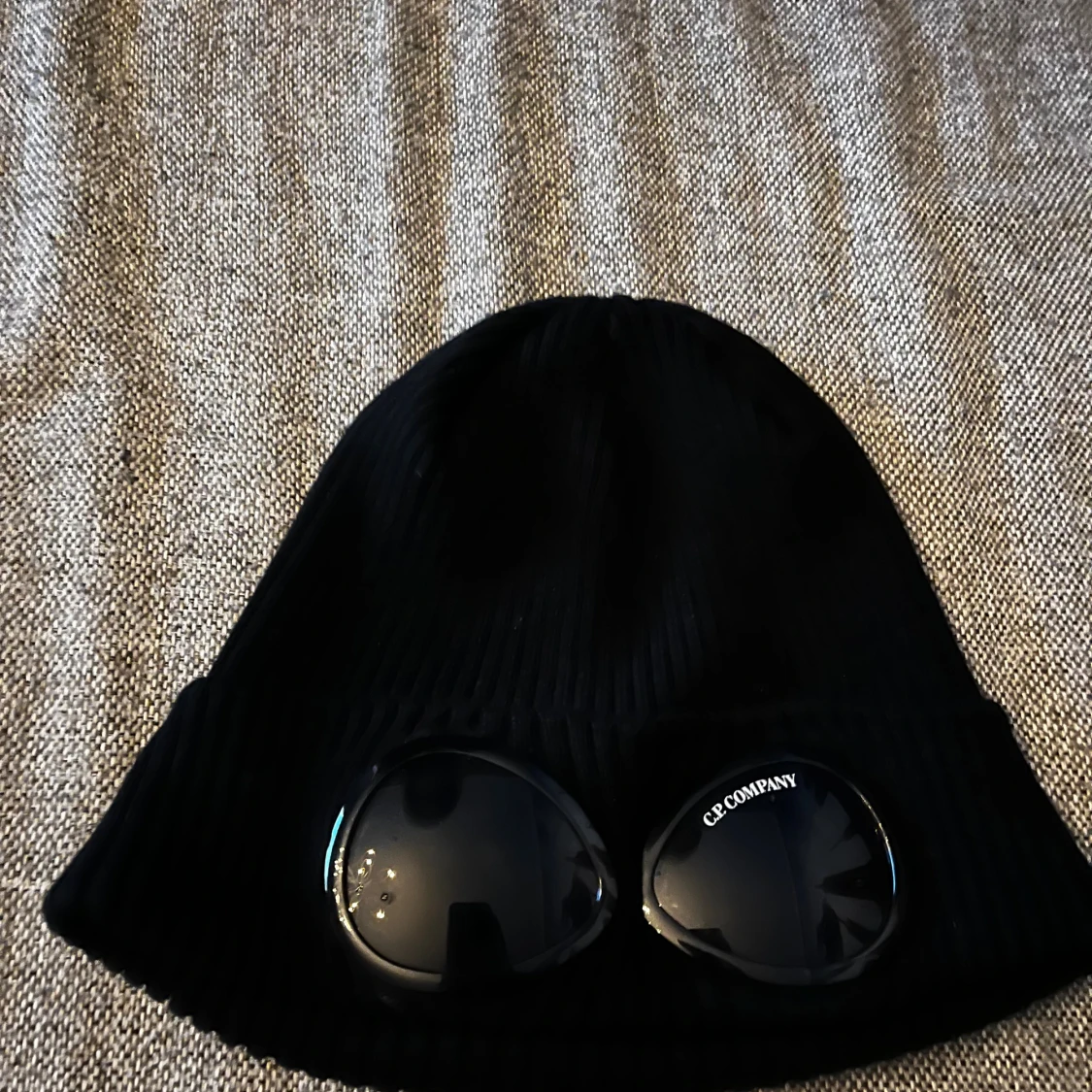 Svart ribbstickad mössa från C.P. Company med ikoniska inbyggda goggles framtill. Snygg och unik accessoar som sticker ut och ger streetwear-vibe. Perfekt för dig som vill ha något extra till din outfit.