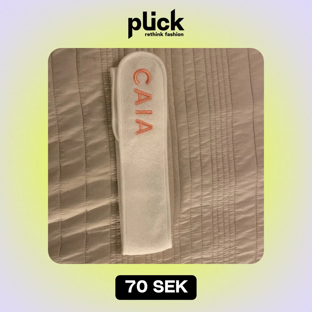 Säljer ett vitt diadem/hårband från CAIA i mjukt material. Perfekt för att hålla håret borta vid sminkning eller ansiktsvård. Diademet/hårbandet har en enkel design med broderad logga i rosa. Använd det för en bekväm och stilren look!