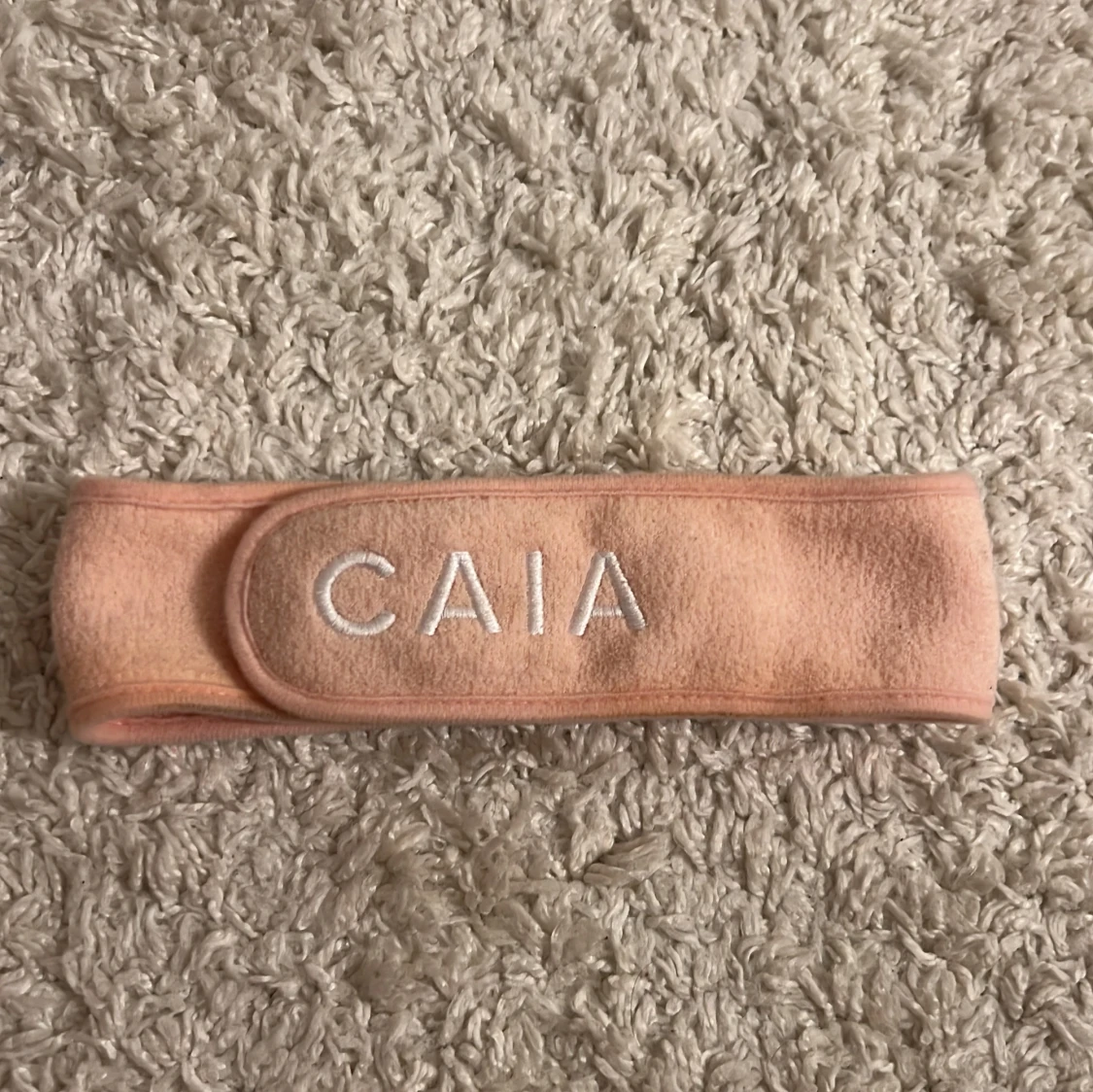 Säljer ett mjukt rosa diadem från CAIA. Perfekt för att hålla håret borta vid sminkning eller ansiktsvård. Diademet har kardborreband för justerbar passform. Använt 3-4ggr