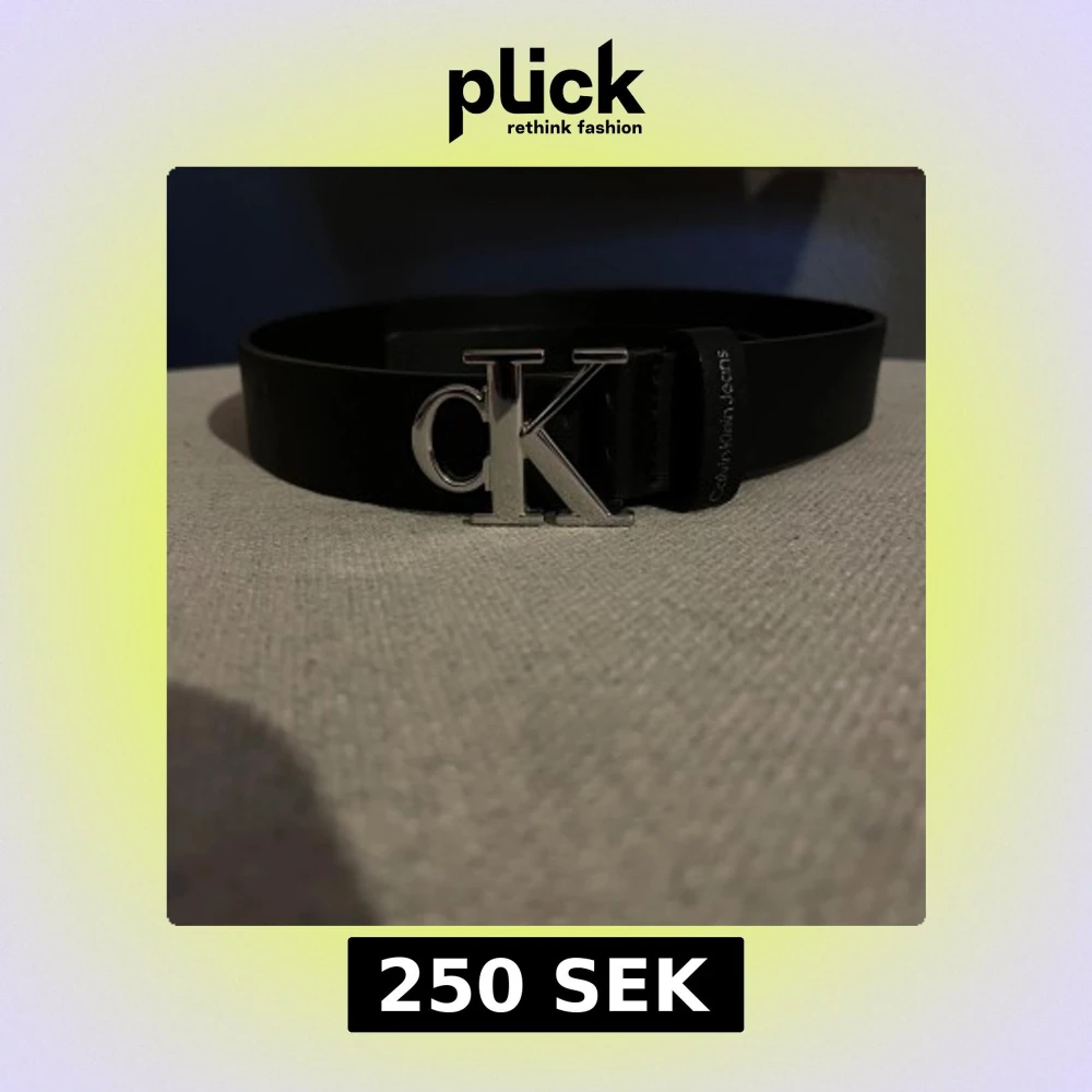 Snyggt svart bälte från Calvin Klein med en stor, blank silverspänne i form av CK-loggan. Bältet är gjort i slätt skinn och har en stilren, minimalistisk design som lyfter vilken outfit som helst. Perfekt för dig som gillar klassiska accessoarer med en modern touch.