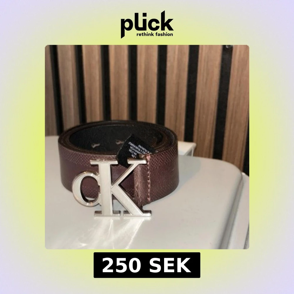 Säljer ett brunt skärp från Calvin Klein med en stor, silvrig CK-logga som spänne. Bältet är gjort i skinn och har en stilren, klassisk design. Perfekt accessoar för att lyfta din outfit med en touch av designerstil. Längden med loggan är 95cm. Nypris 500kr. Hör av er vid intresse/ frågor!