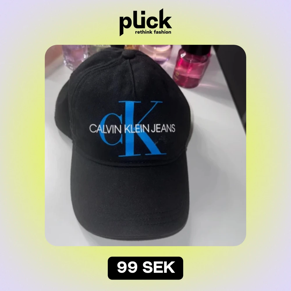 En svart Calvin Klein keps med blått tryck(säljs inte längre) har används vårdsamt och är i mycket bra skick. Storlek S/M men går att justera storleken bak på kepsen. Hör av er vid frågor. Nypris 599