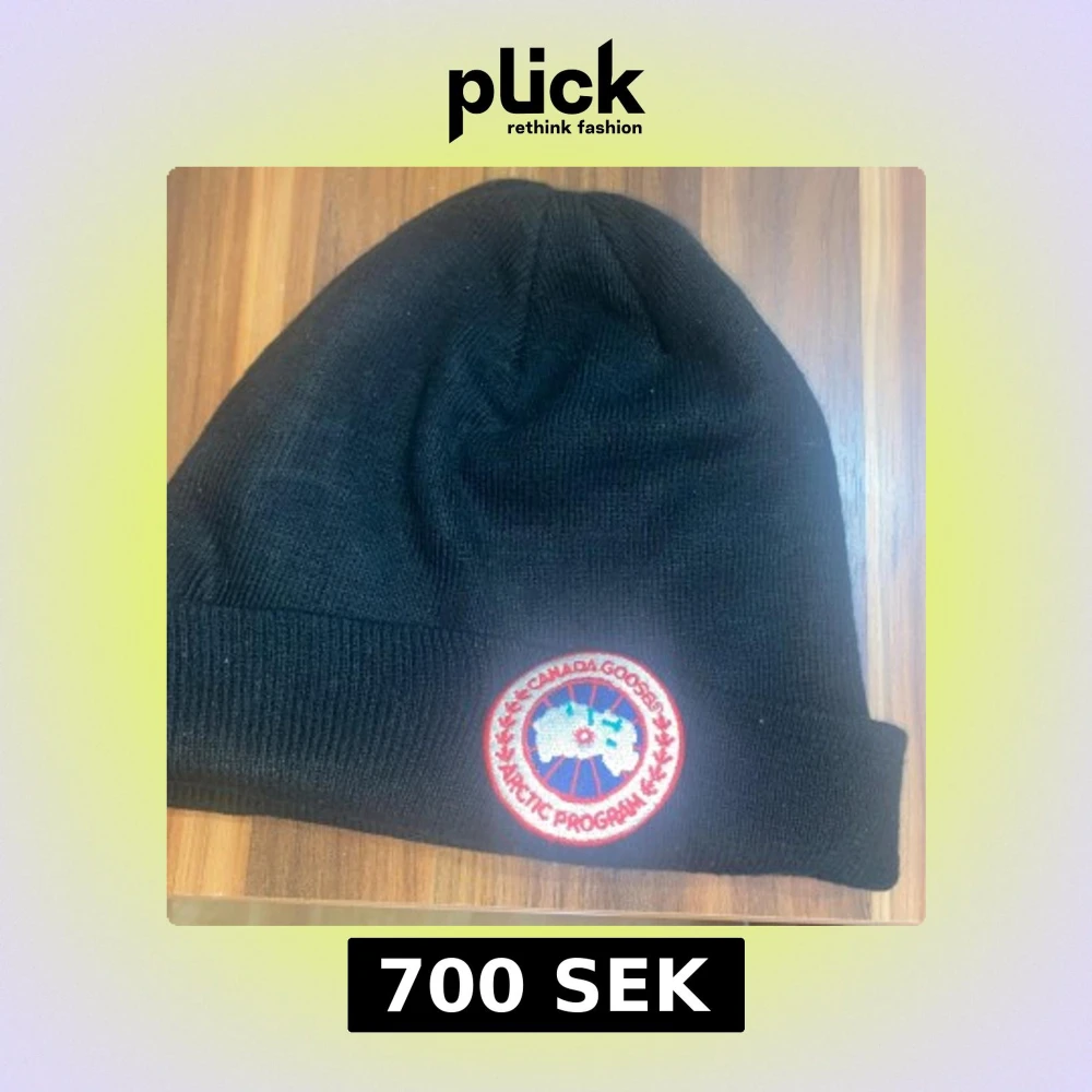Svart ribbstickad mössa från Canada Goose med klassisk rund patch framtill i rött, vitt och blått. Snygg och enkel design som passar till jackan, med uppvikt kant och broderad logga. Perfekt för kalla dagar och en clean streetstyle.