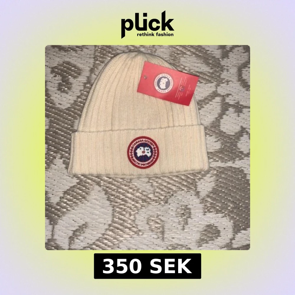 Helt ny snygg vit ribbad mössa från Canada Goose med ett broderat märke framtill. Perfekt för kyliga dagar och ger en stilren look. Mössan är i en neutral färg som passar till det mesta. Pris kan diskuteras