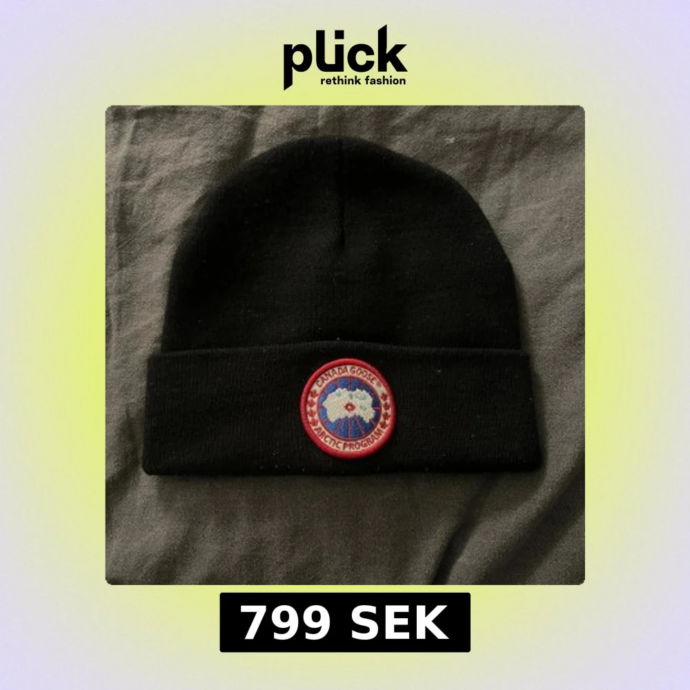 Svart mössa från Canada Goose med klassisk rund logopatch framtill i rött, vitt och blått. Mössan är ribbstickad och har uppvikt kant för extra stilpoäng. Perfekt för kalla dagar och enkel att matcha med din jacka.