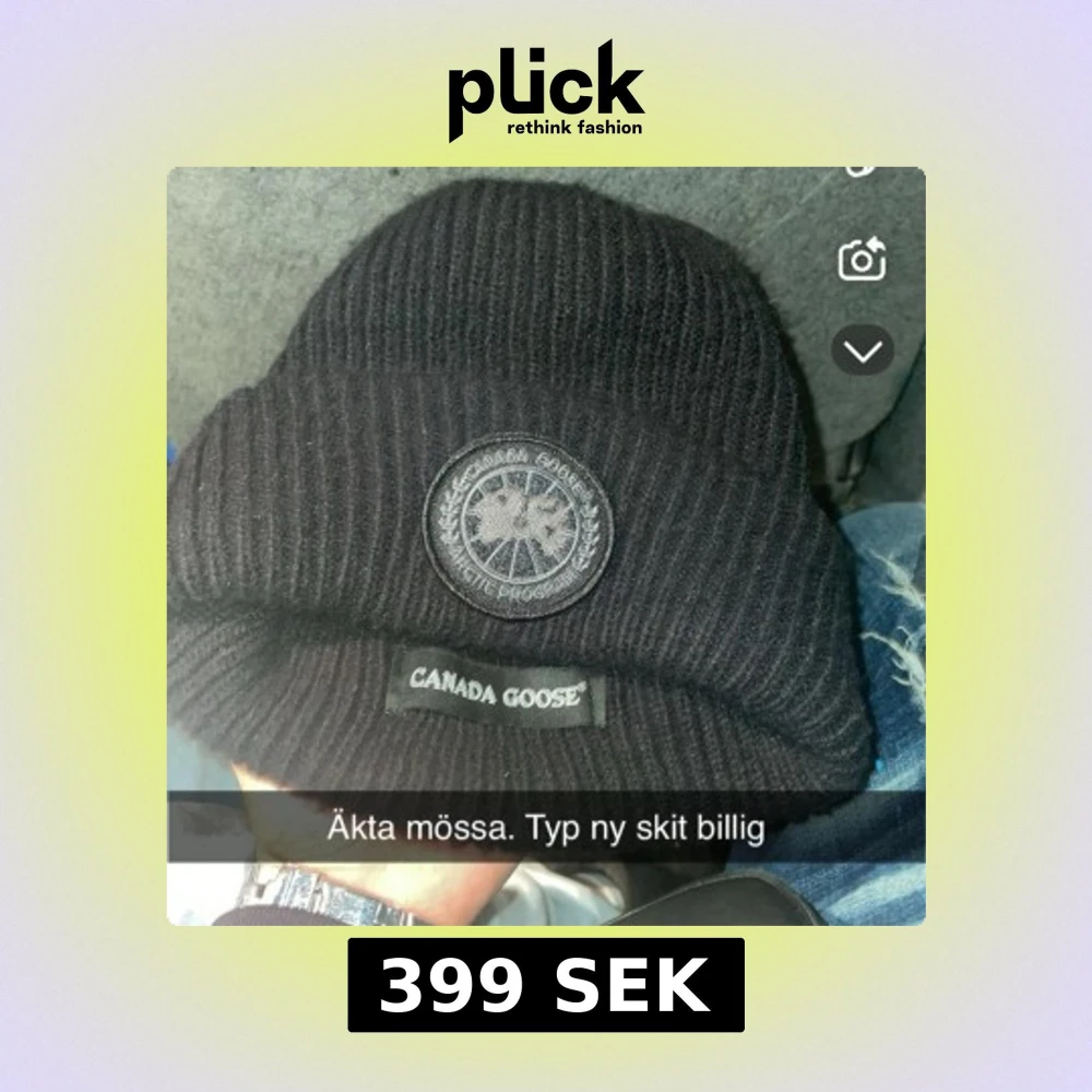 Säljer en svart ribbad mössa från Canada Goose med broderad logga framtill. Perfekt för kyliga dagar och ger en stilren look. Passar bra till både vardag och utomhusaktiviteter.