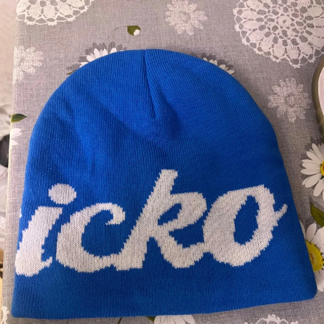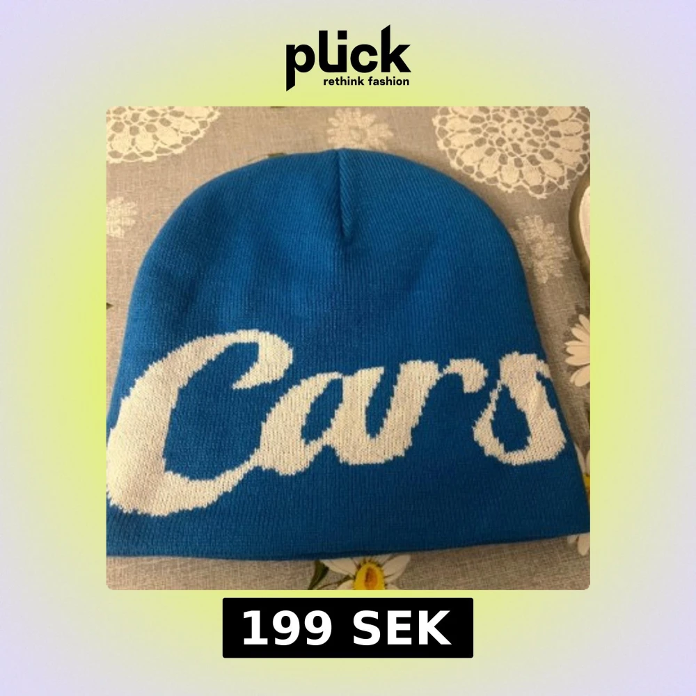 Snygg blå mössa från Carlsicko med stor vit text runt hela mössan. Tillverkad i stickad polyester som håller dig varm och ger en cool streetstyle-look. Perfekt accessoar för att sticka ut i mängden under kyliga dagar.