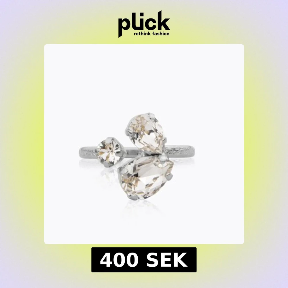(Tryck inte på köp nu) Elegant silverring prydd med tre stora, klara stenar i olika storlekar. Den unika designen ger en lyxig känsla och passar perfekt för speciella tillfällen. Köpte den för en månad sen men använd sparsamt och i bra skick!!❤️
