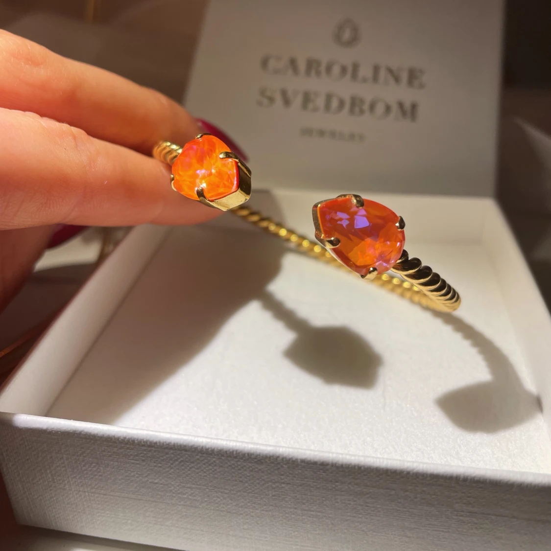 Mini drop bracelet från Caroline Svedbom i färgen orange glow delite