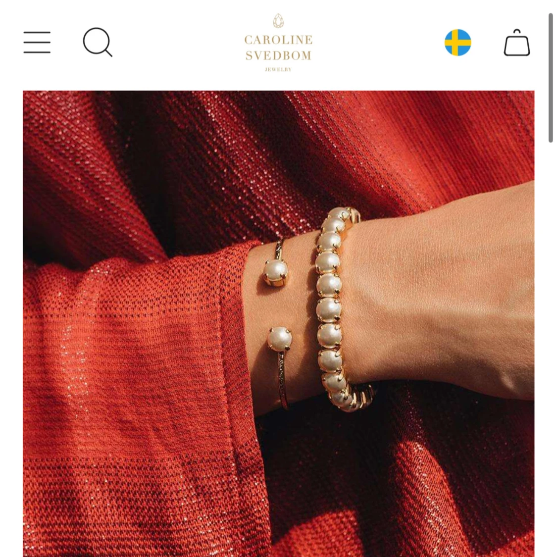 Guldigt armband från Caroline Svedbom med pärlor. Går att justera storlek så de passar dig. Superfint och i gott skick! Skriv för fler funderingar. Nypris 595kr.