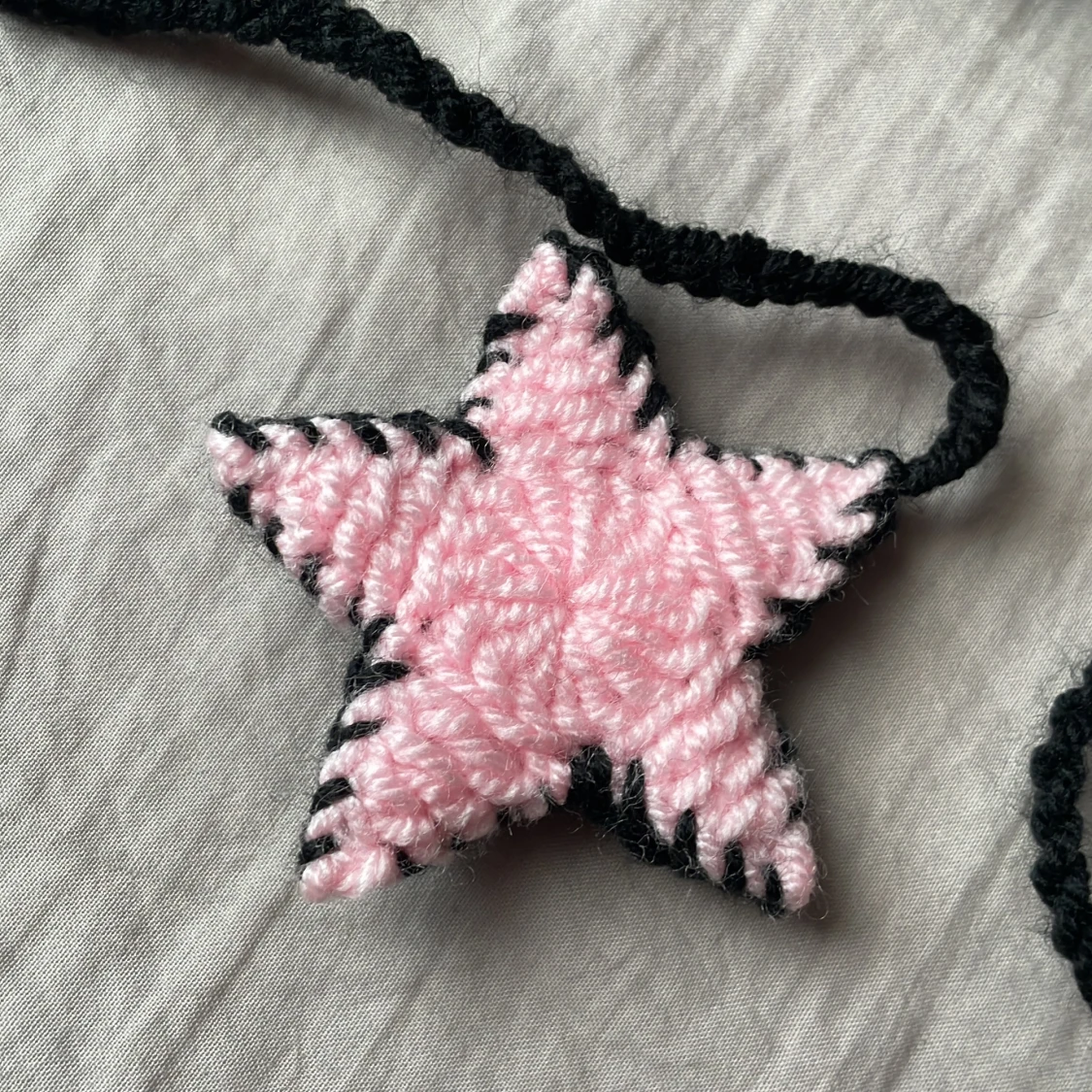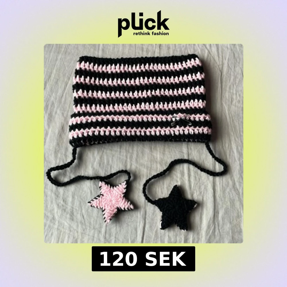 Virkad cat beanie med stjärnor. Gjord av akrylgarn, säljer matchande benvärmare i min profil💕