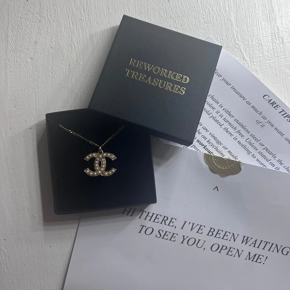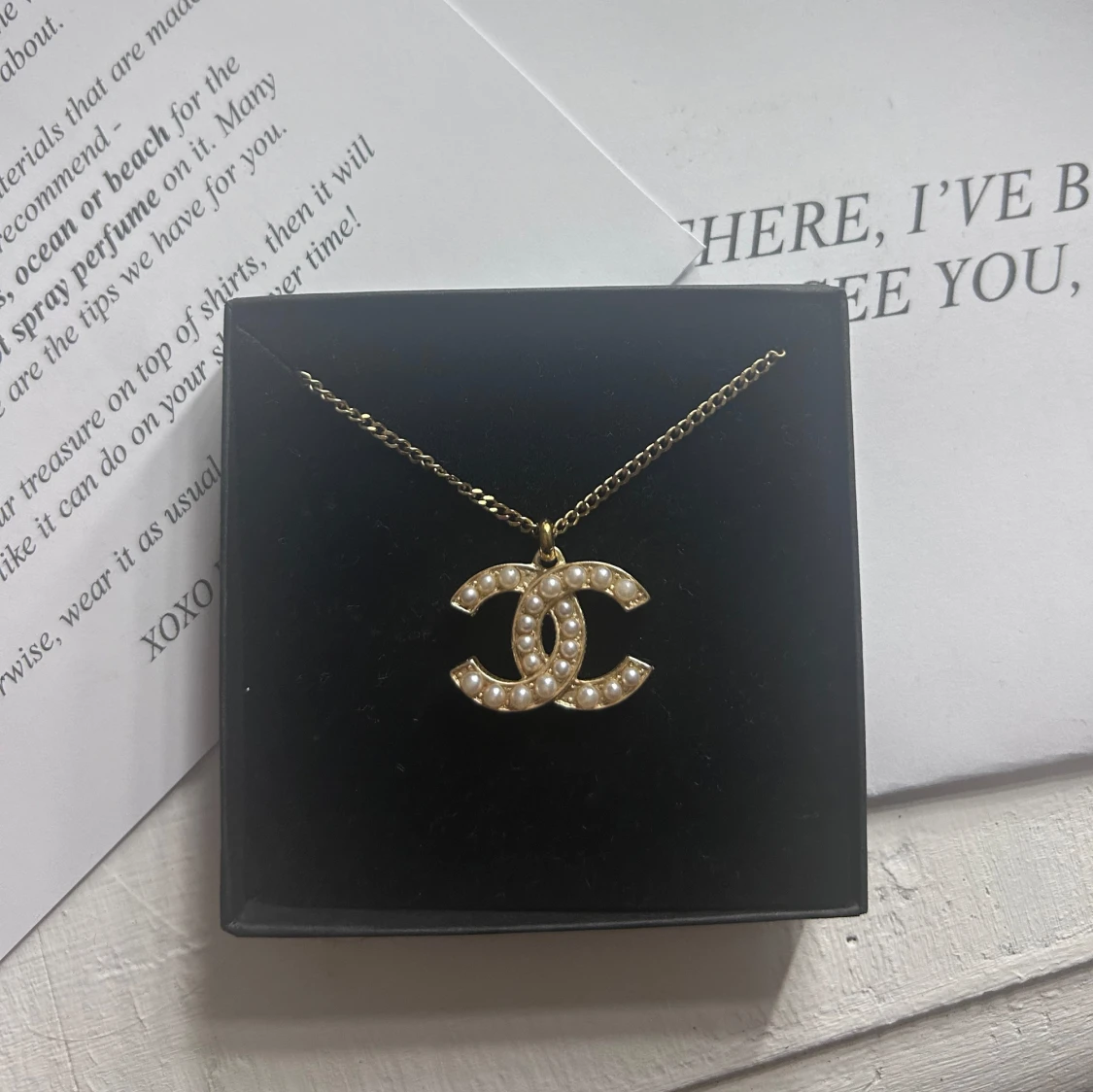 säljer mitt så fina guldiga chanel halsband! ifrån reworked treasures så 100% äkthets garanti🥰 säljer pga att det inte kommer till användning!