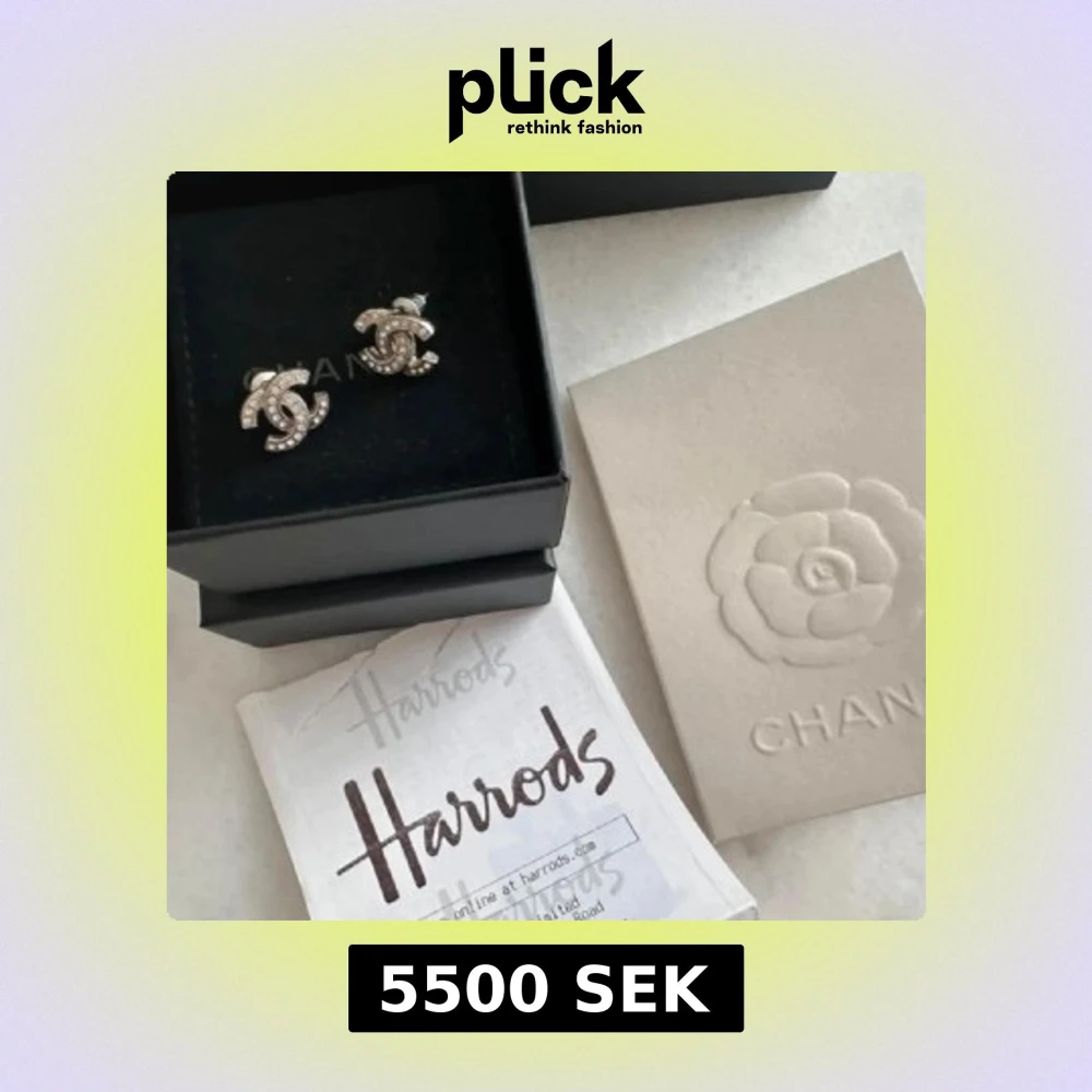 Säljer ett par ikoniska Chanel CC örhängen i silverfärgad metall med gnistrande strass-stenar. De har den klassiska dubbla C-loggan och kommer i original ask med Chanel-blomma. Perfekt accessoar för att lyfta din look. Medföljer kvitto äktshetsbevis kartong. Finns inte längre i sortiment.