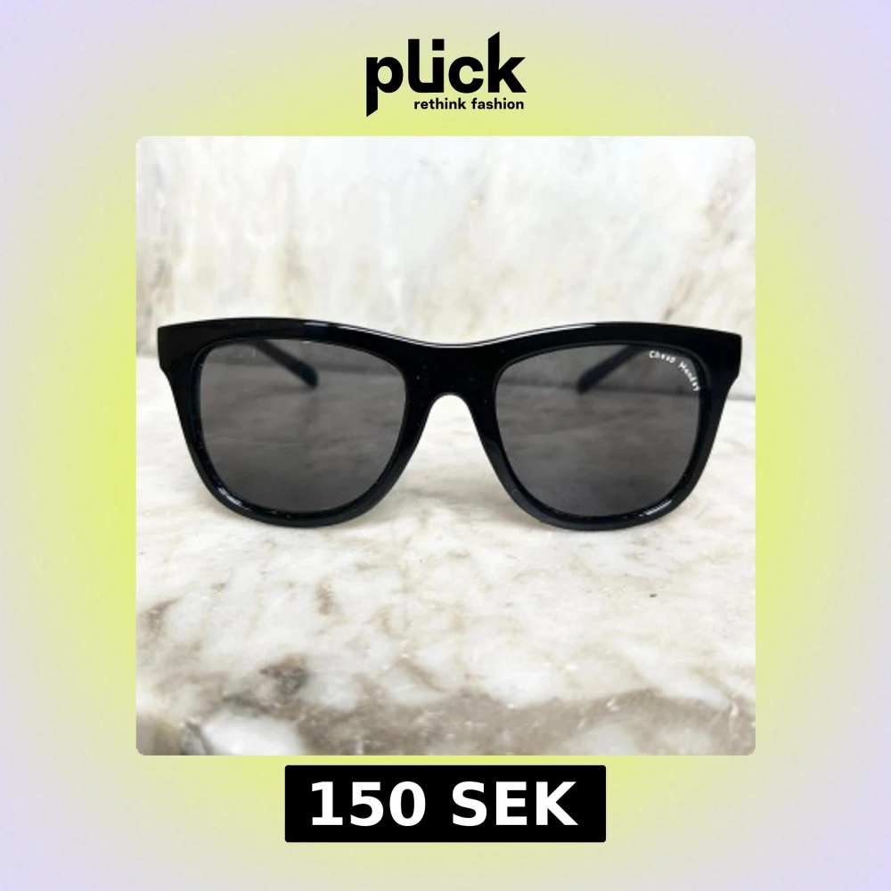 Snygga svarta solglasögon från Cheap Monday med en klassisk design. De har en stilren svart båge och mörka linser som ger ett coolt och tidlöst intryck. Perfekta för soliga dagar och en stilren look. Levereras med en liten tygpåse. Aldrig använda. Bredd: 140mm Skalmlängd: 150mm Linshöjd: 42mm Linsbredd: 50mm Näsbryggans bredd: 20mm