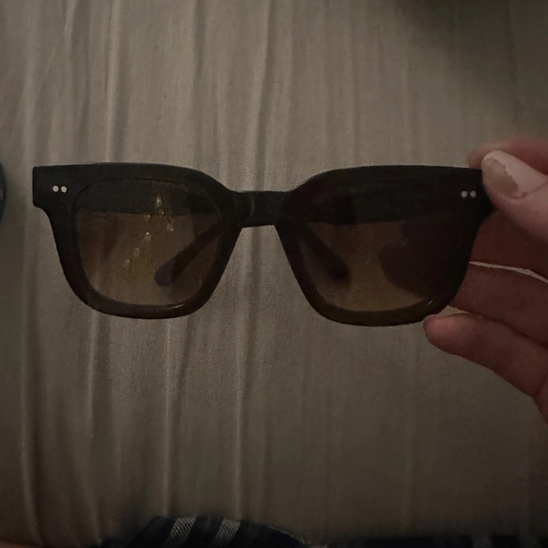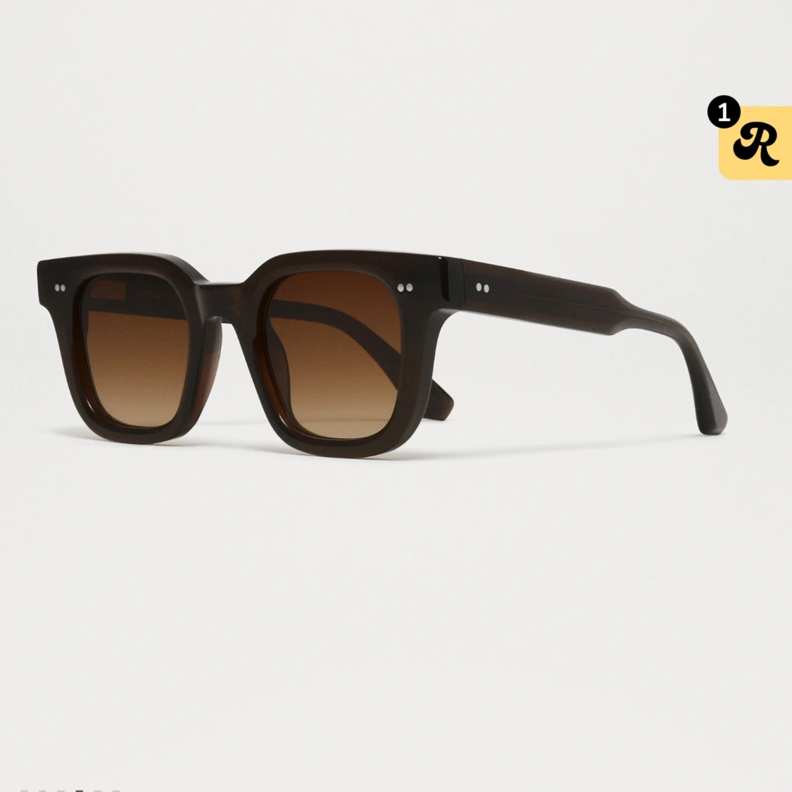 Snygga solglasögon med brun fyrkantig ram och tonade bruna glas. Modellen har en chunky retrostil med två silverprickar på varje sida av fronten. Passar dig som gillar statement-accessoarer och vill sticka ut med en cool look.