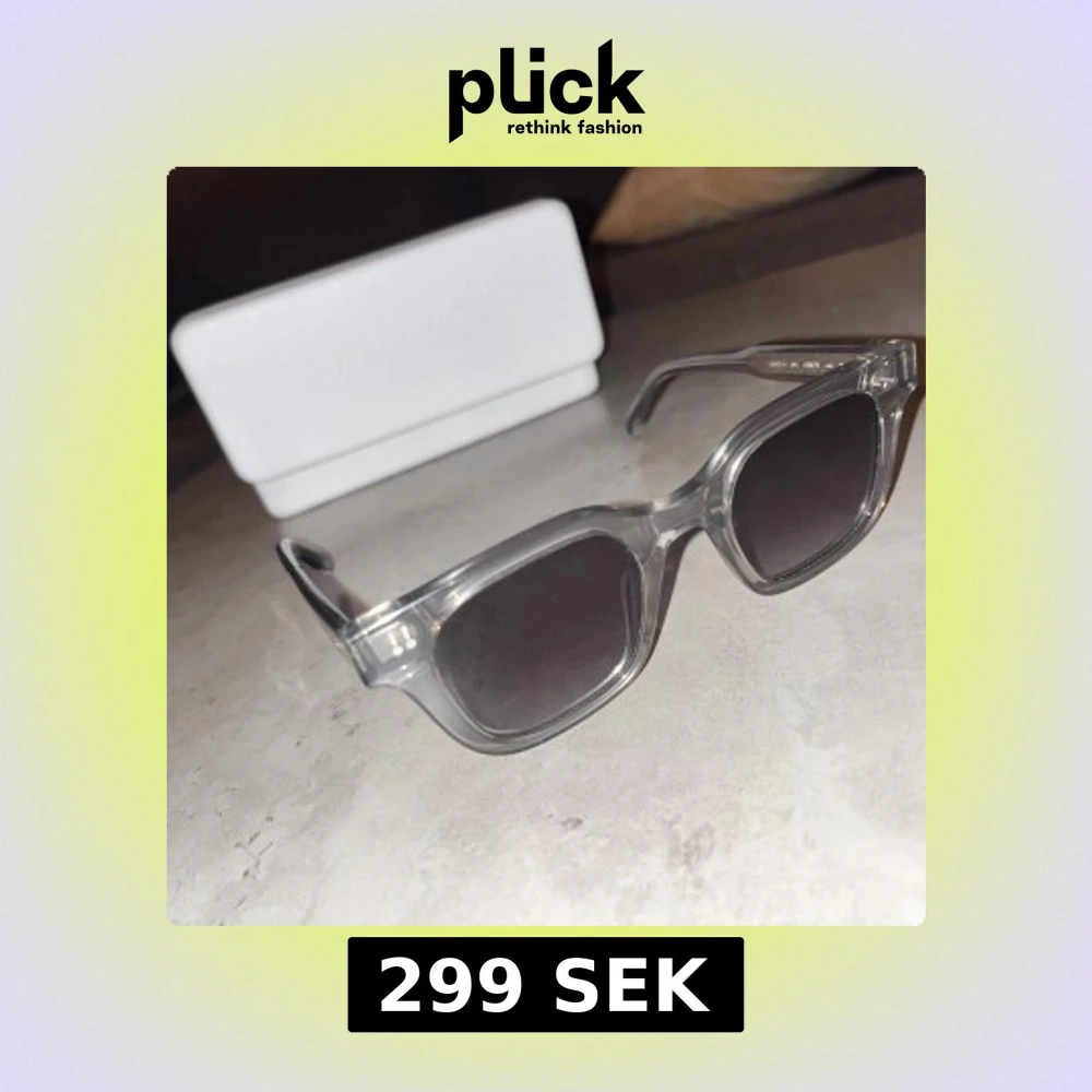 Snygga solglasögon från Chimi med transparent båge och mörka fyrkantiga glas. Prissätt kan diskuteras